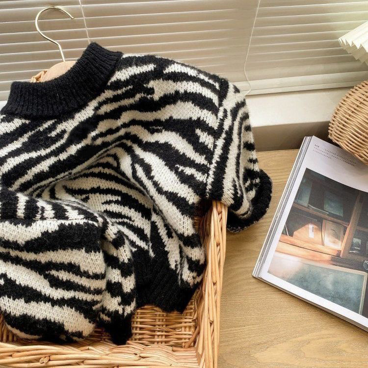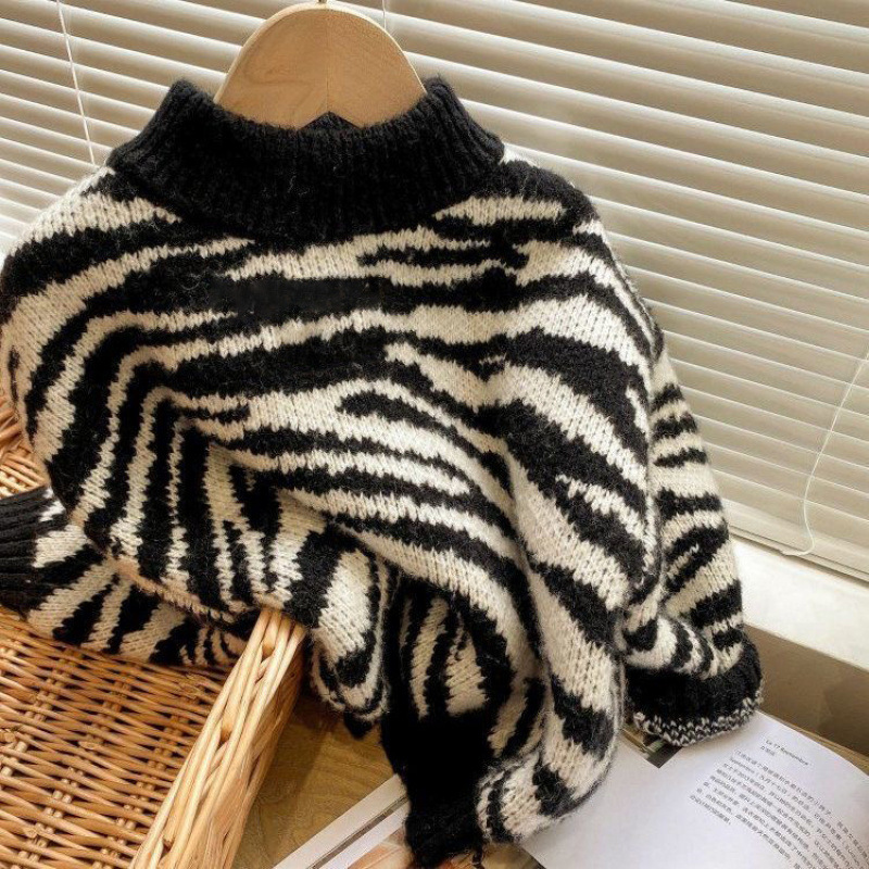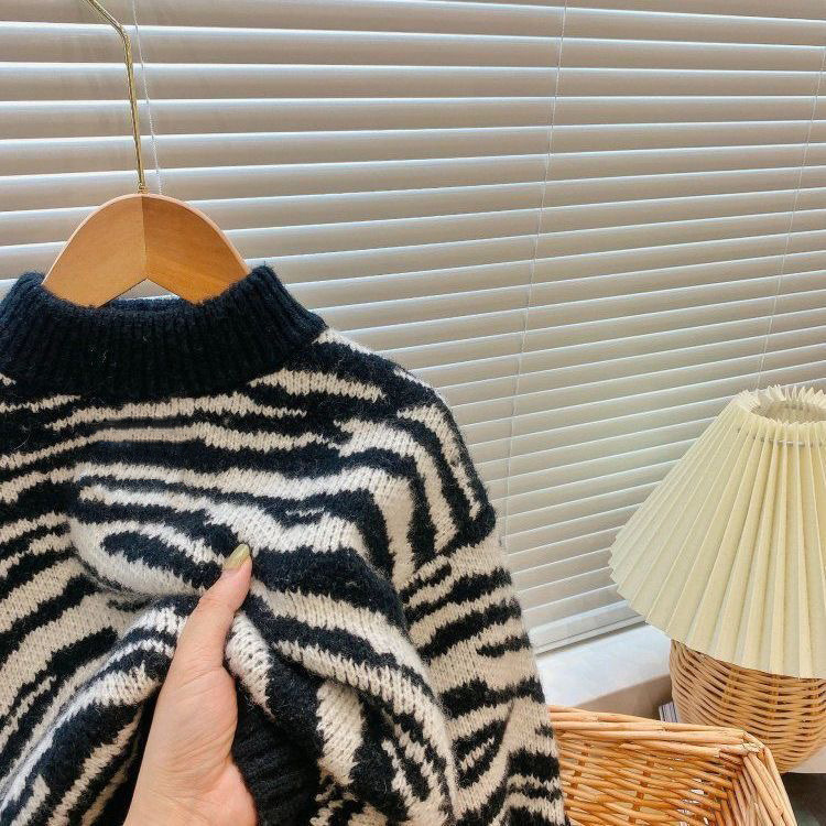 2024 줄무늬 어린이 새 스웨터 겨울 어린이 서양식 잘 생긴 남녀 아동복이 두꺼워졌습니다.스토어 가기