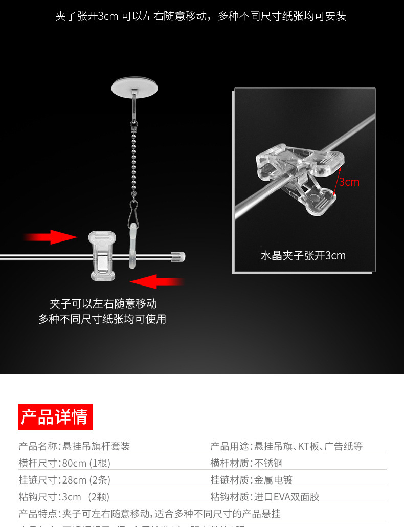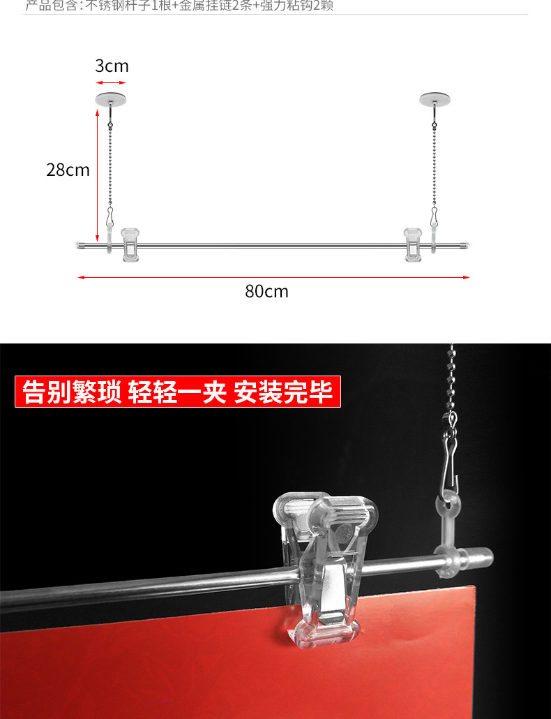 • 80cm 세트 (폴 + 걸이 체인 + 끈끈한 고리)