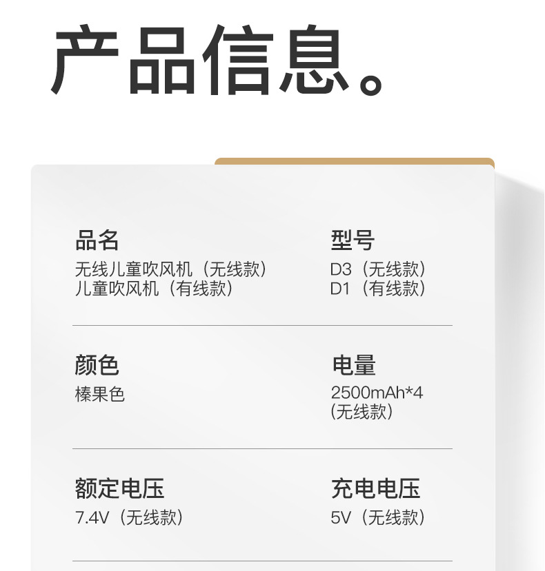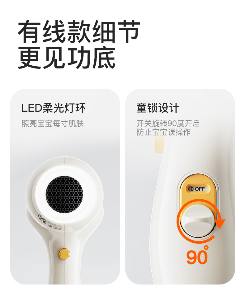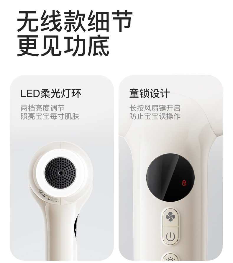 • [소프트 라이트 무선 모델] 0~6세 권장, 방사선 거의 0개/부드러운 소리 및 저소음/3단계 풍온(자체 5V2A 충전 헤드 필요)