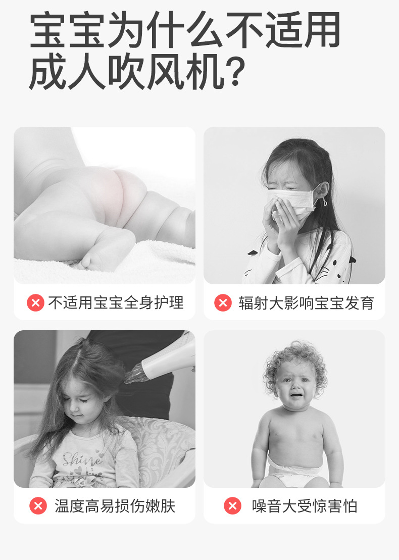 Skuld 베이비 베이비 어린이 헤어드라이어 무선 빨간 엉덩이 빛 헤어드라이어 특수 헤어드라이어
