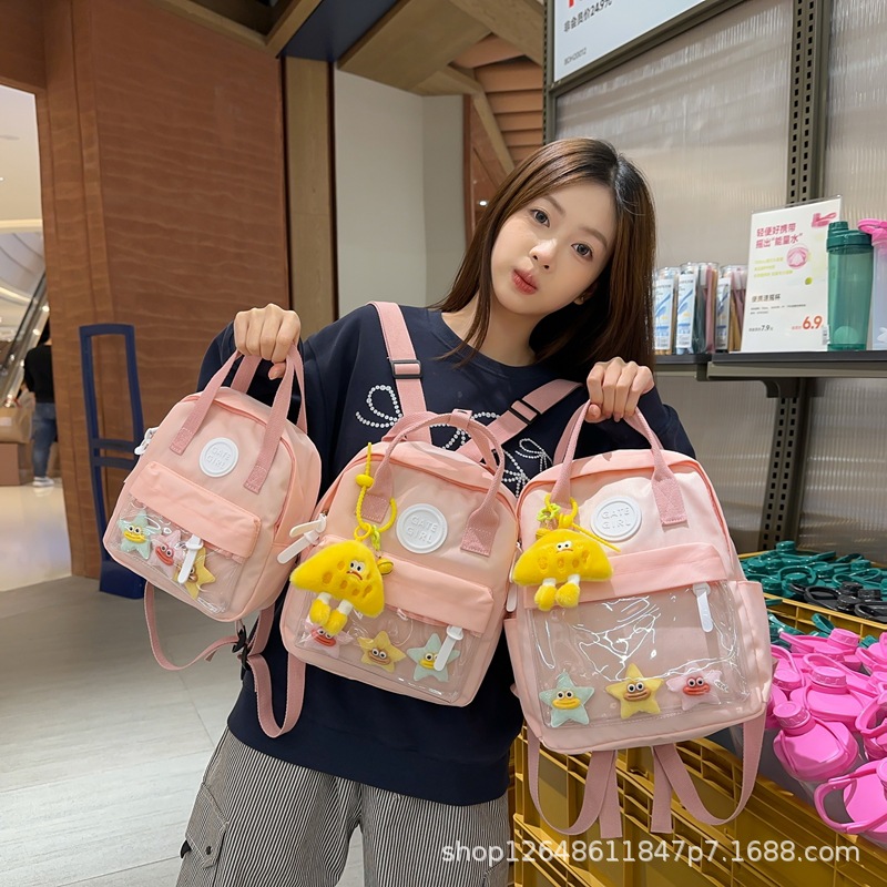 한국 어린이 투명 작은 배낭 유치원 학교 가방 귀여운 경량 작은 신선한 배낭 작은 미라 가방