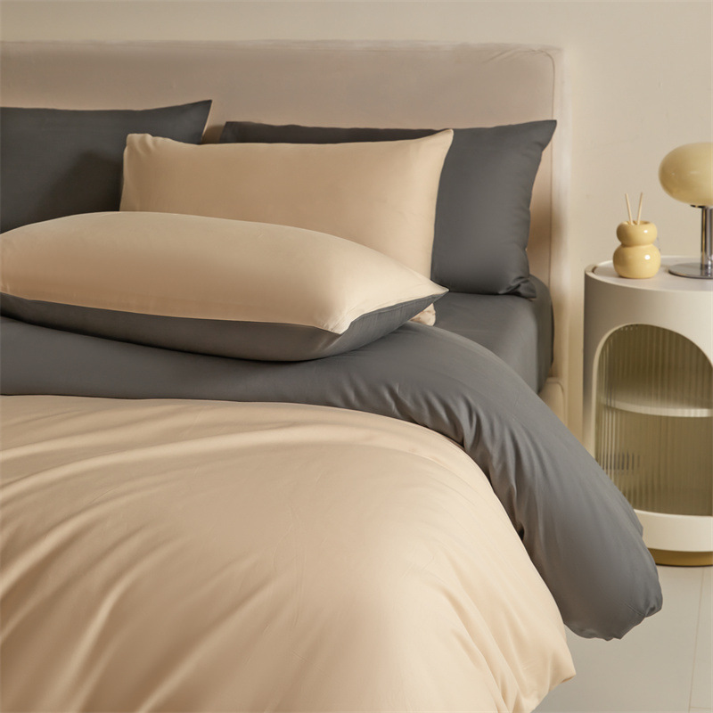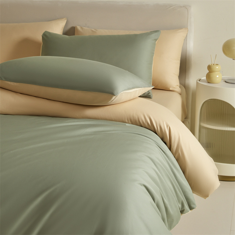 간단한 긴 스테이플 코튼 60 퓨어 코튼 4 피스 세트 퓨어 코튼 솔리드 컬러 퀼트 커버 침대 시트 침대 커버 침대 3 피스 세트 퀼트 커버