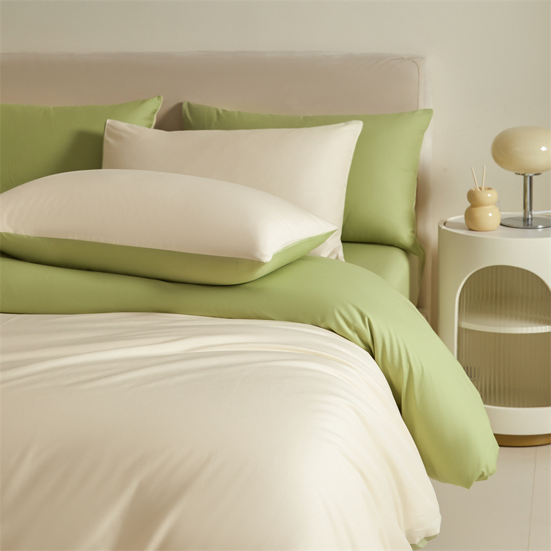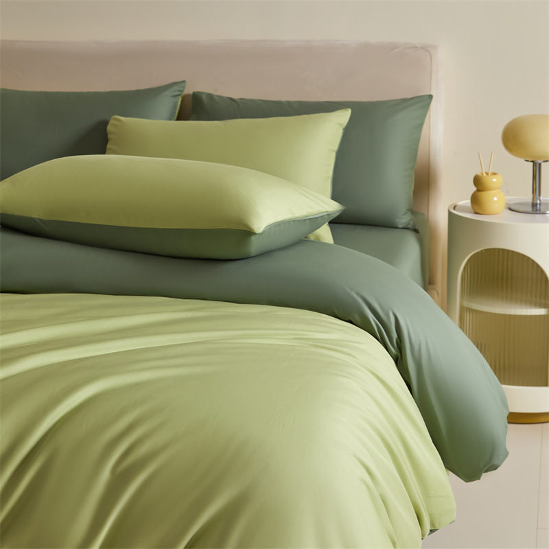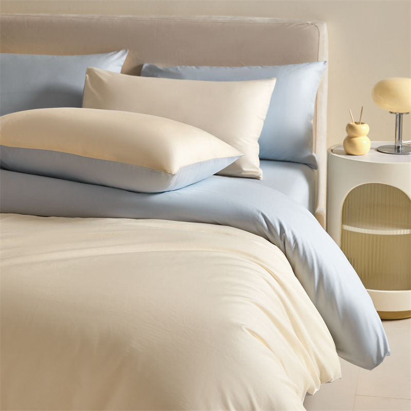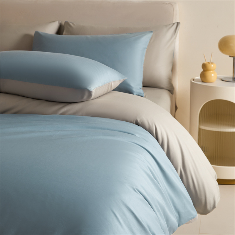 간단한 긴 스테이플 코튼 60 퓨어 코튼 4 피스 세트 퓨어 코튼 솔리드 컬러 퀼트 커버 침대 시트 침대 커버 침대 3 피스 세트 퀼트 커버스토어 가기