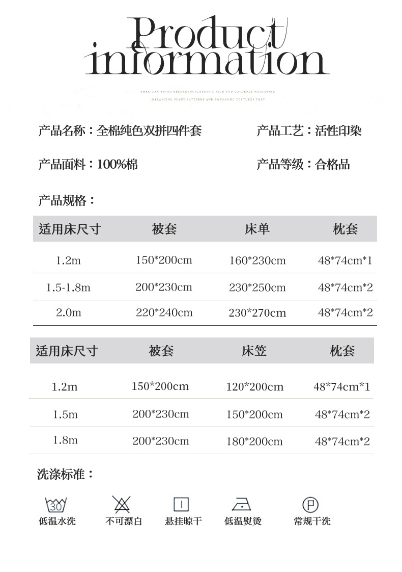 • 1.8m 침대시트 4종세트 [이불커버 200*230cm 침대시트 230*250cm 베개커버 48*74cm*2]