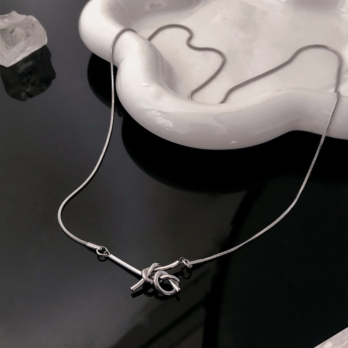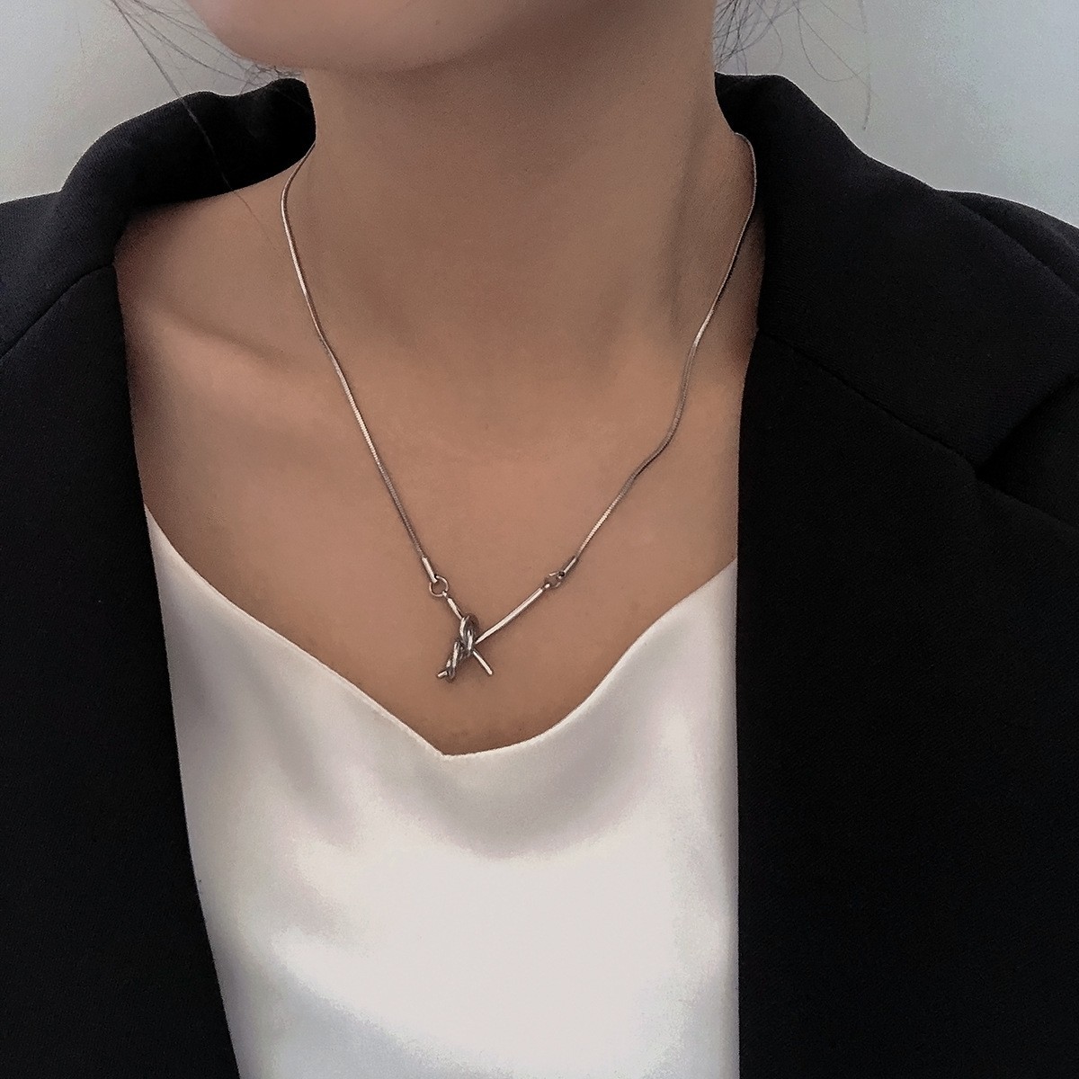간단한 창조적 인 한 단어 매듭 목걸이 여성의 차가운 스타일 패션 하이 엔드 센스 틈새 디자인 인터넷 축하 쇄골 체인 액세서리스토어 가기