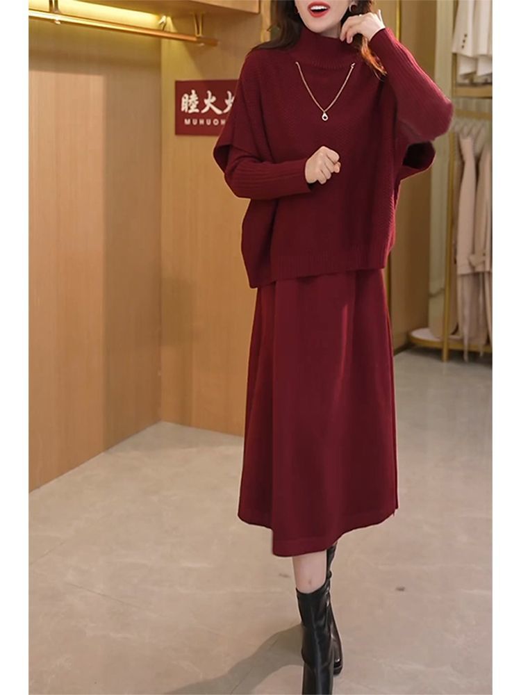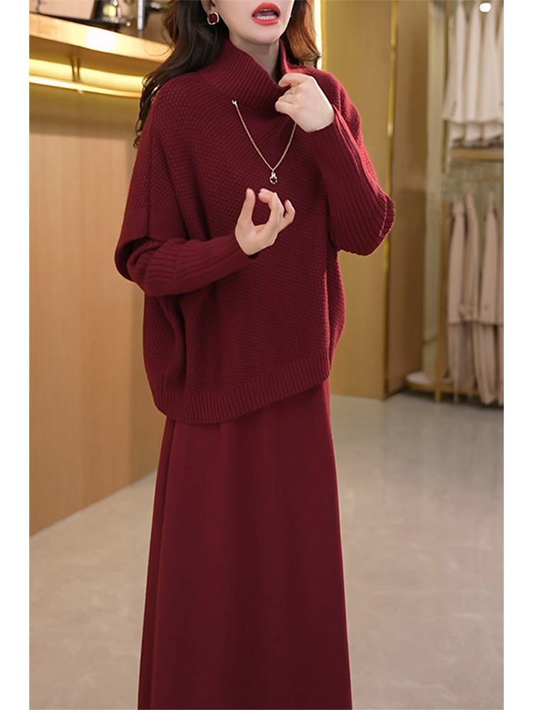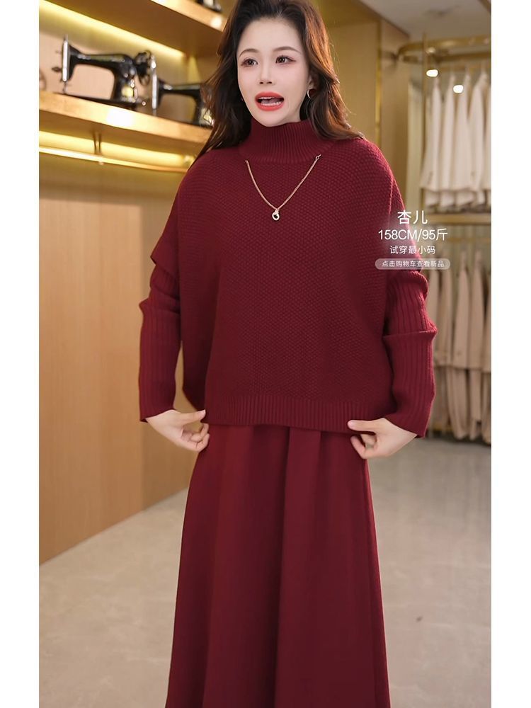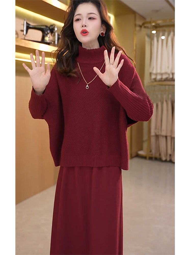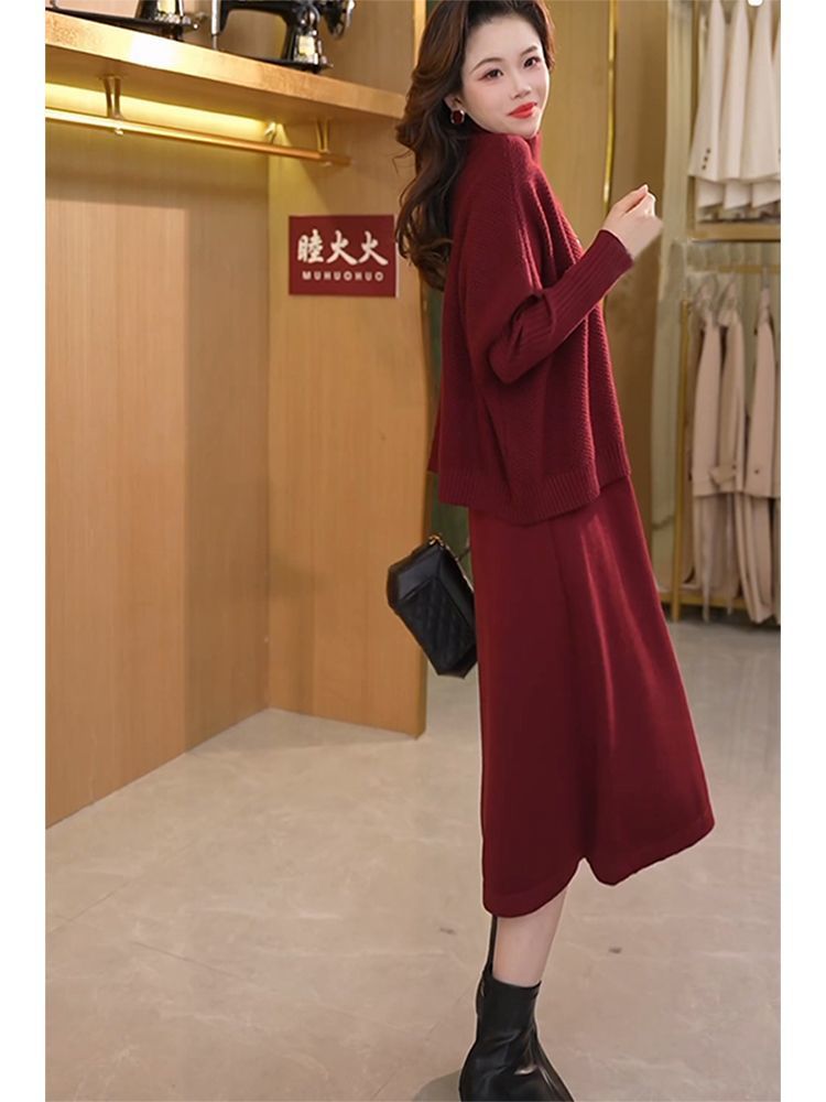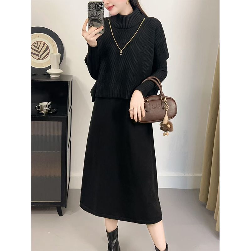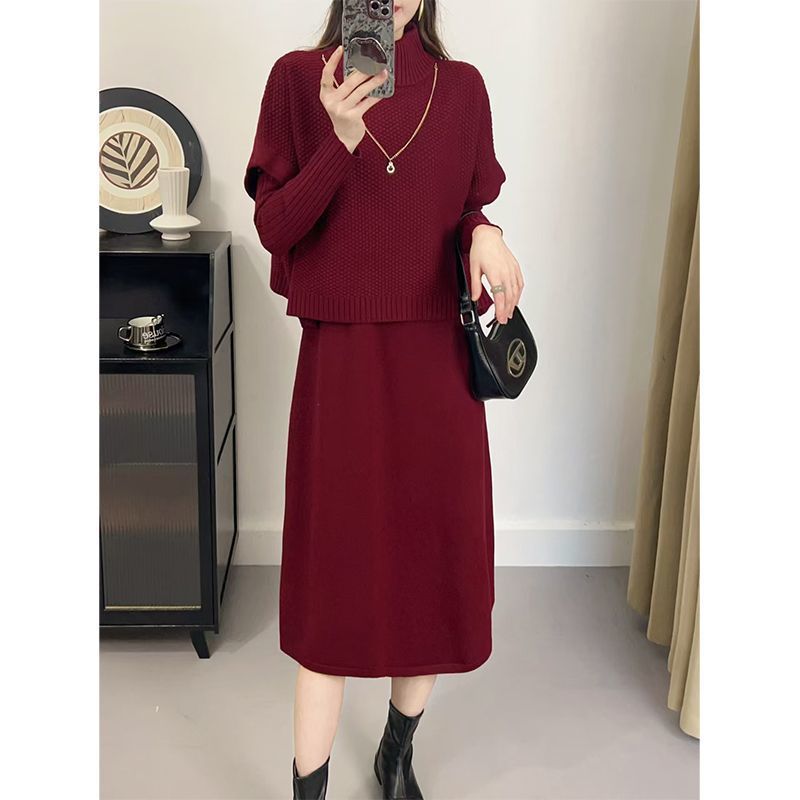 Kuo 아내 패션 두꺼운 두 조각 원피스 여성의 가을과 겨울 2024 새로운 엄마 니트 스웨터 원피스