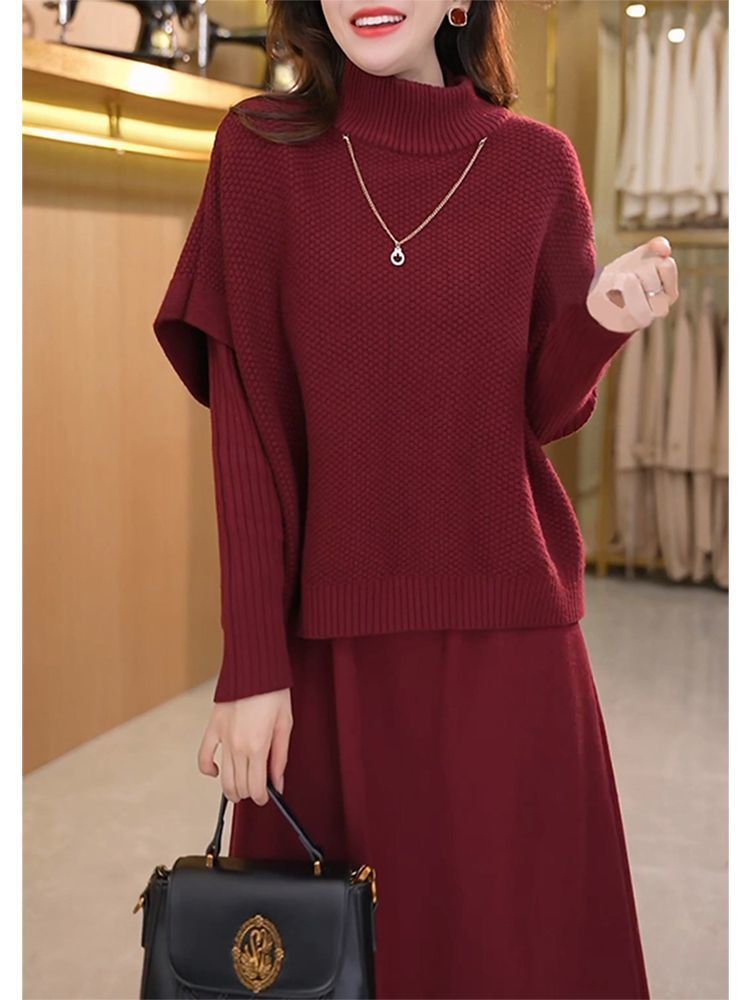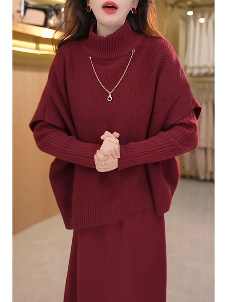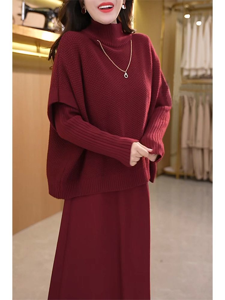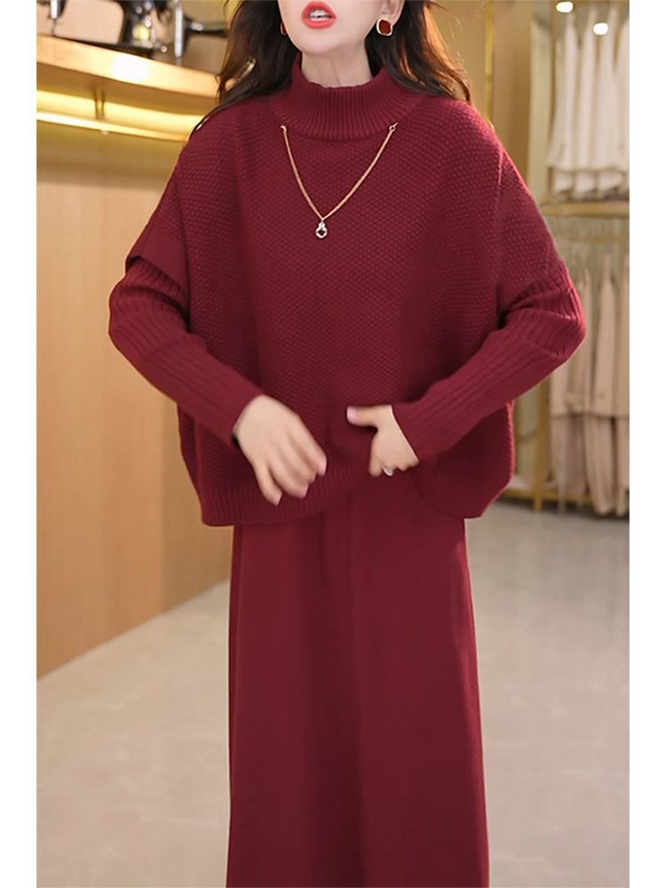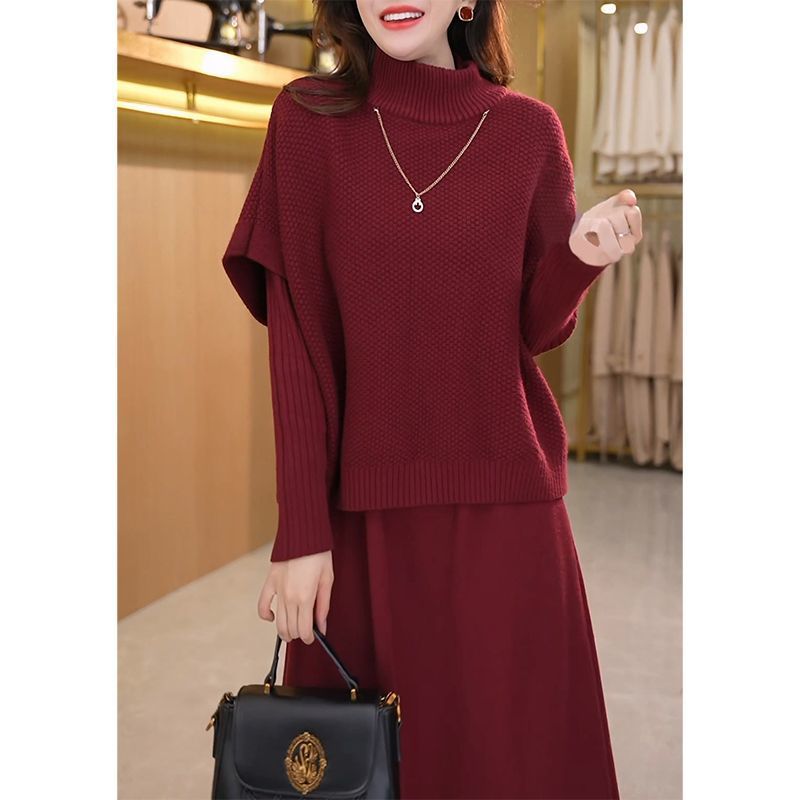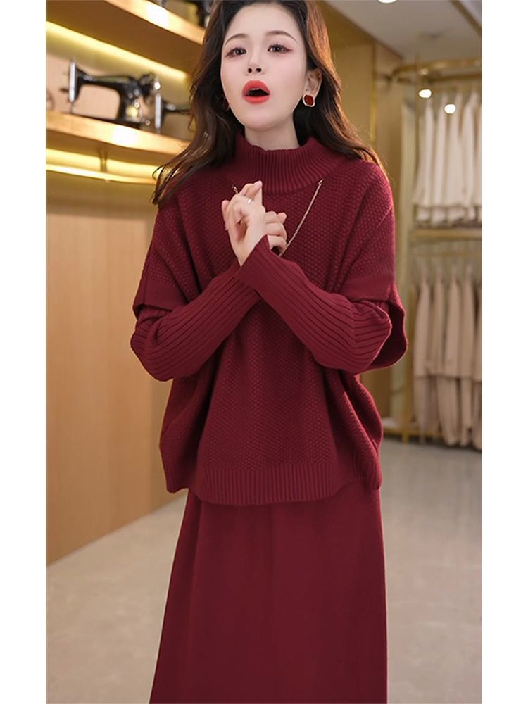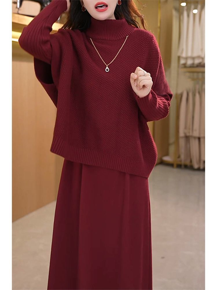 Kuo 아내 패션 두꺼운 두 조각 원피스 여성의 가을과 겨울 2024 새로운 엄마 니트 스웨터 원피스