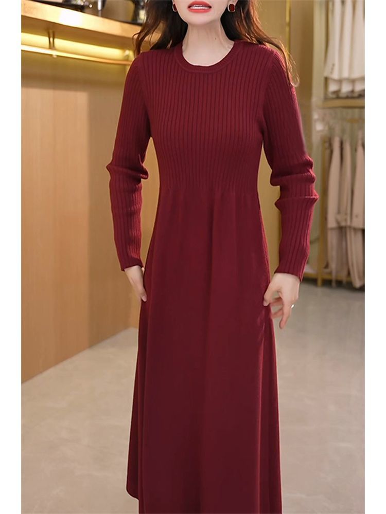 Kuo 아내 패션 두꺼운 두 조각 원피스 여성의 가을과 겨울 2024 새로운 엄마 니트 스웨터 원피스스토어 가기