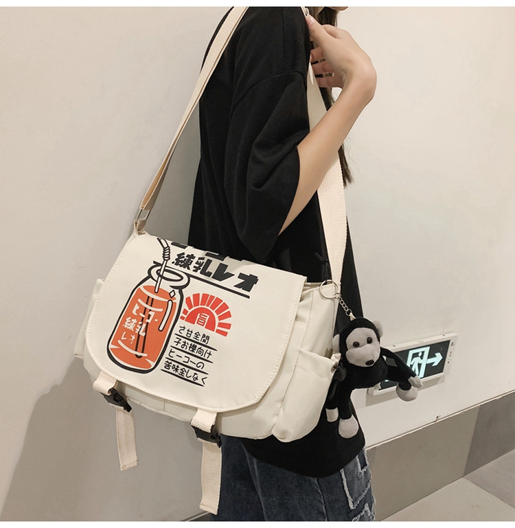 봄과 여름 새로운 슈퍼 쿨 크로스 바디 백 유행 캔버스 메신저 백 대용량 거리 어깨 가방 남성과 여성