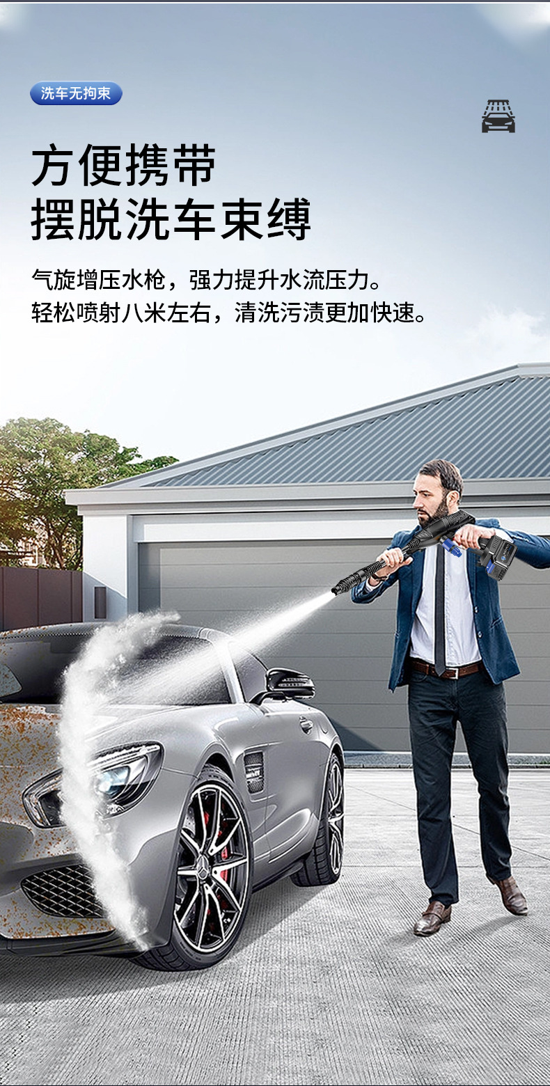 크로스-국경 다기능 세차 물 총 고전압 충전식 리튬 자동차 세탁기 가정용 야외 휴대용 세차 총스토어 가기