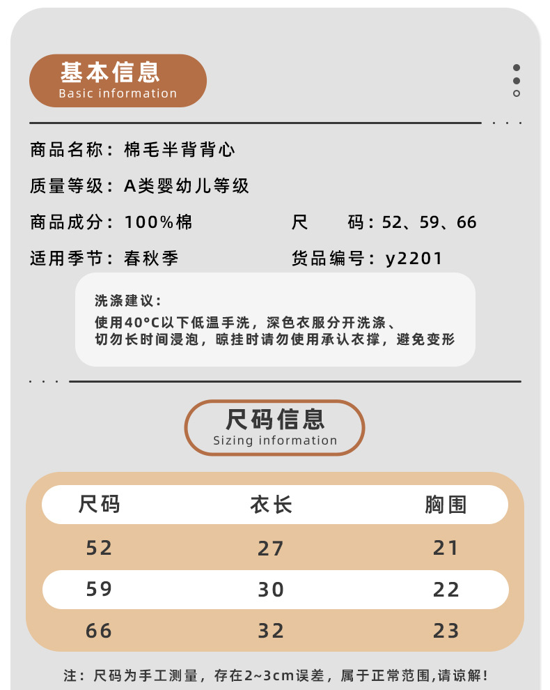 신생아 아기 조끼 클래스 뼈없는 퓨어 코튼 소프트, 편안하고 착용하기 쉬운 봄과 가을 반백 조끼 소년 소녀스토어 가기