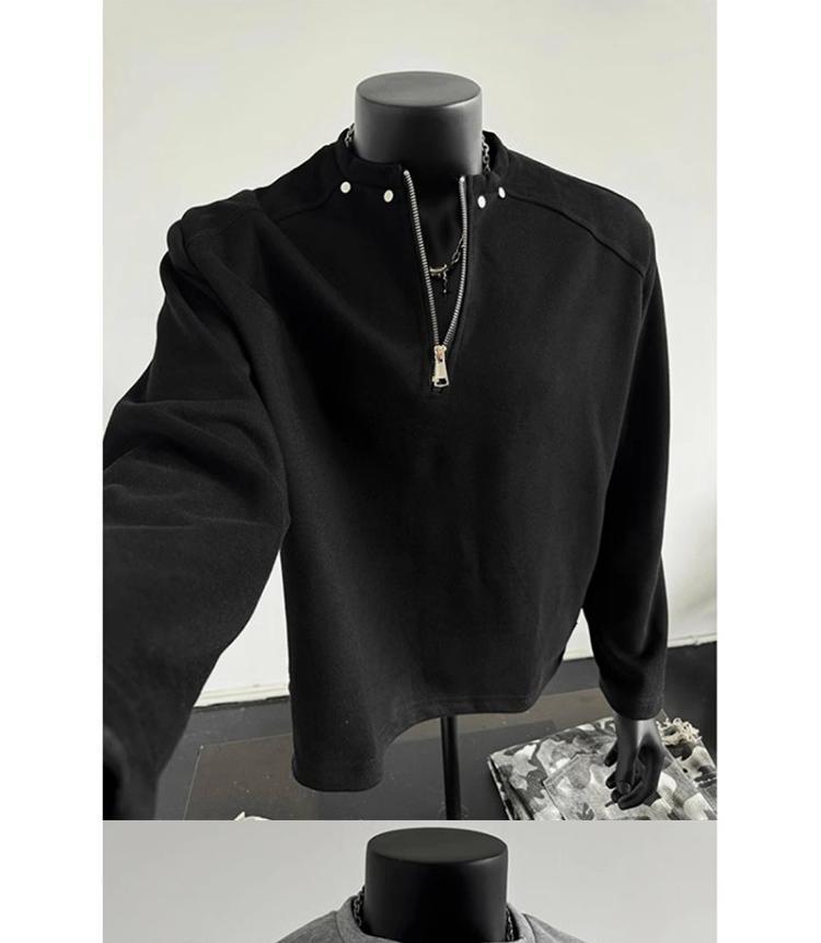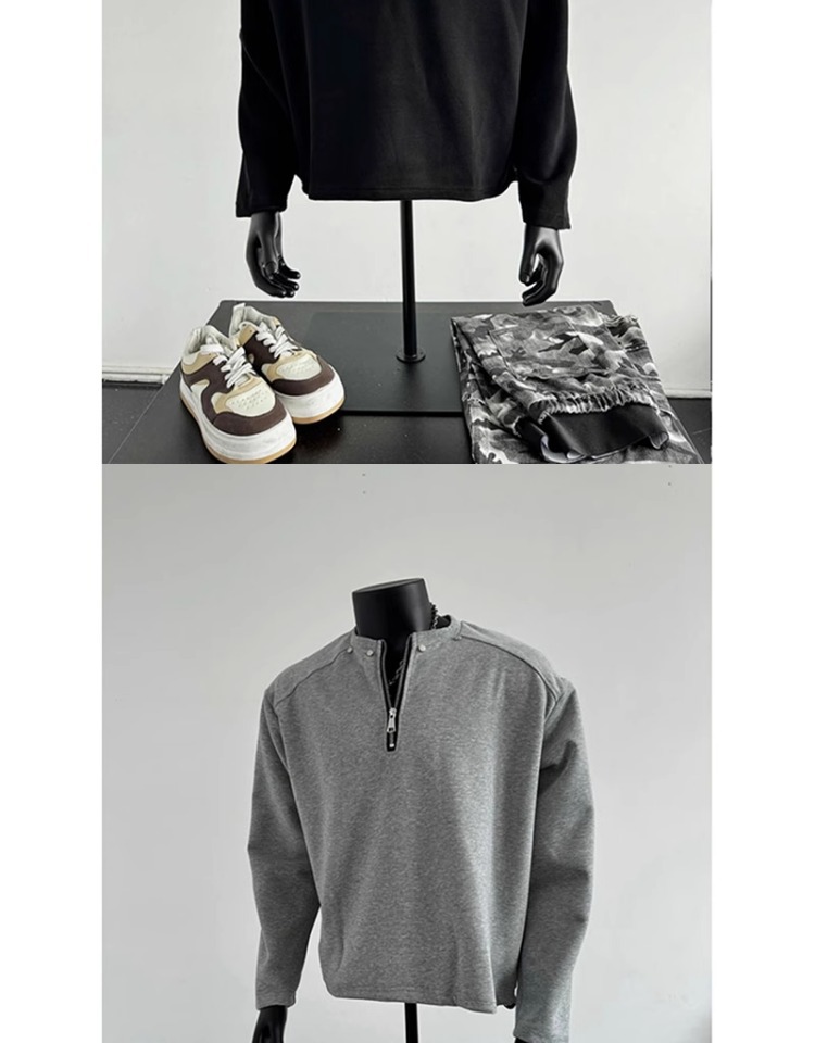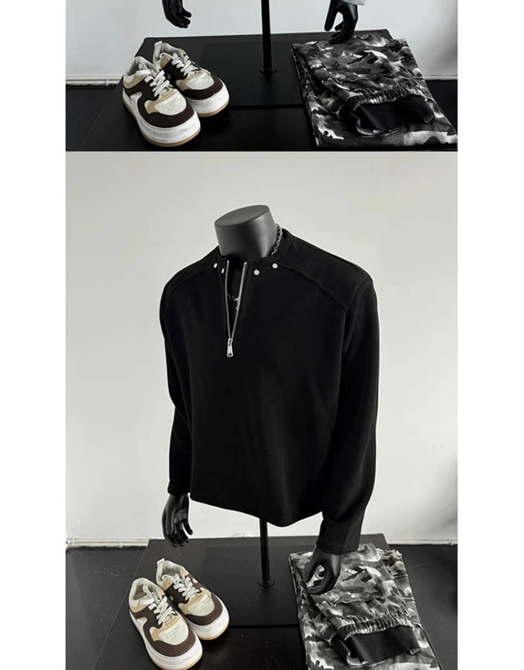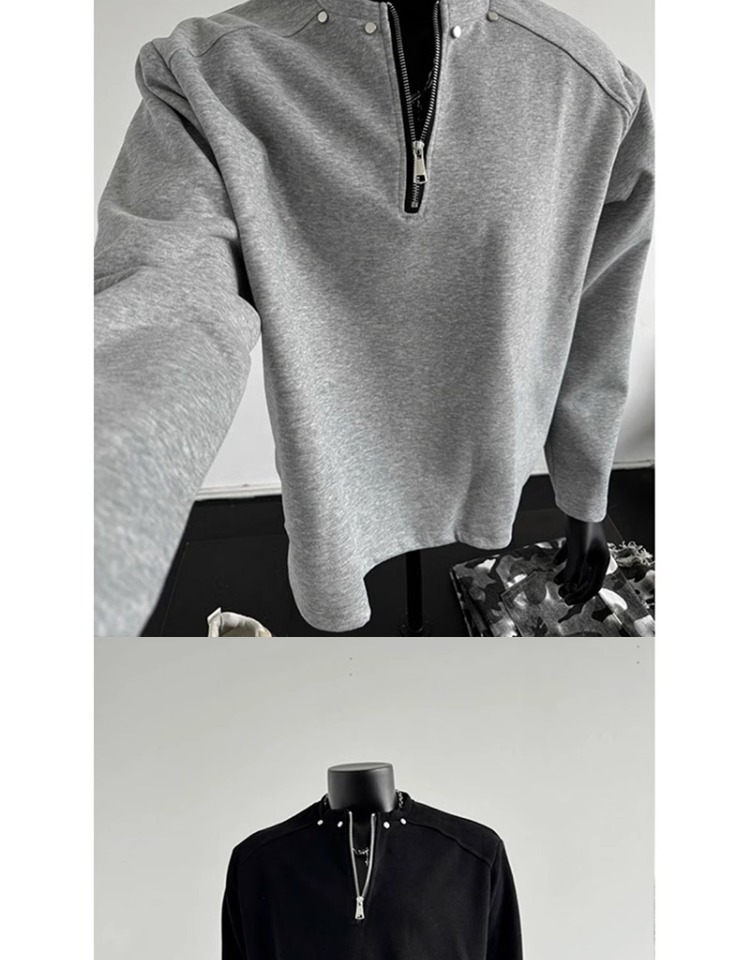 블랙 하프 지퍼 어깨 패드 스웨트 셔츠 남자 가을 겨울 아메리칸 스타일 숄더 스터드 긴팔 티셔츠 Pui Handsome 짧은 재킷스토어 가기