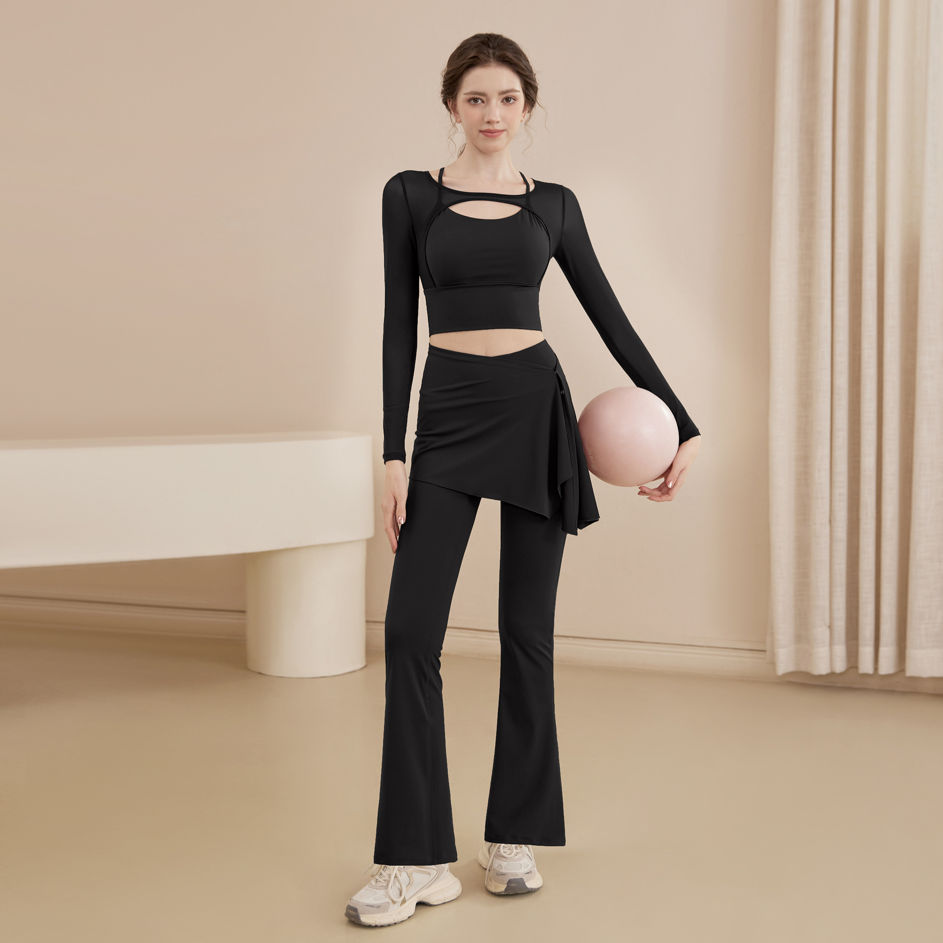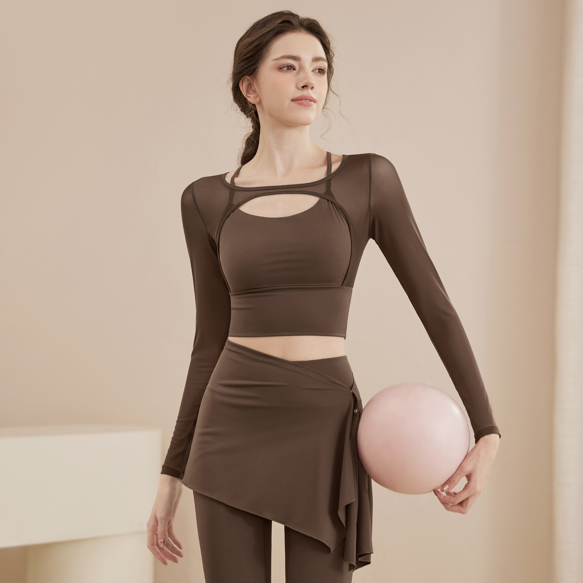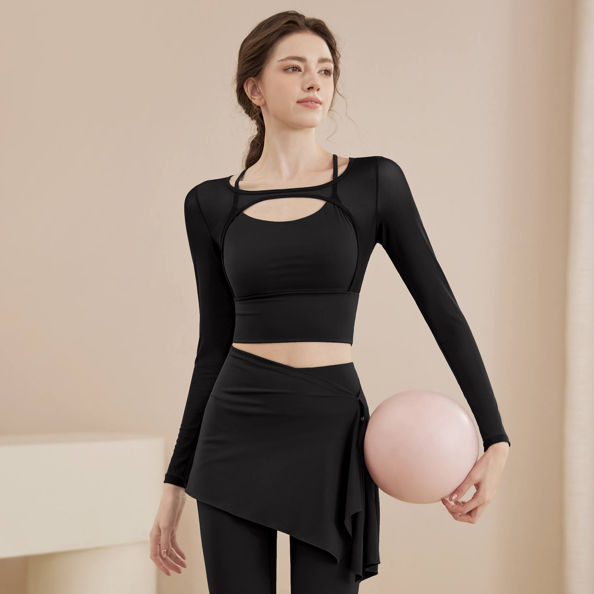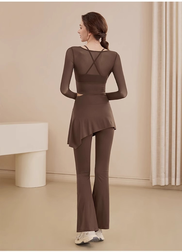 봄과 여름 새로운 요가 세트 여성 피트니스 사이클링 필라테스 러닝 작은 디자인 커버 엉덩이 요가 의류 세트 여성