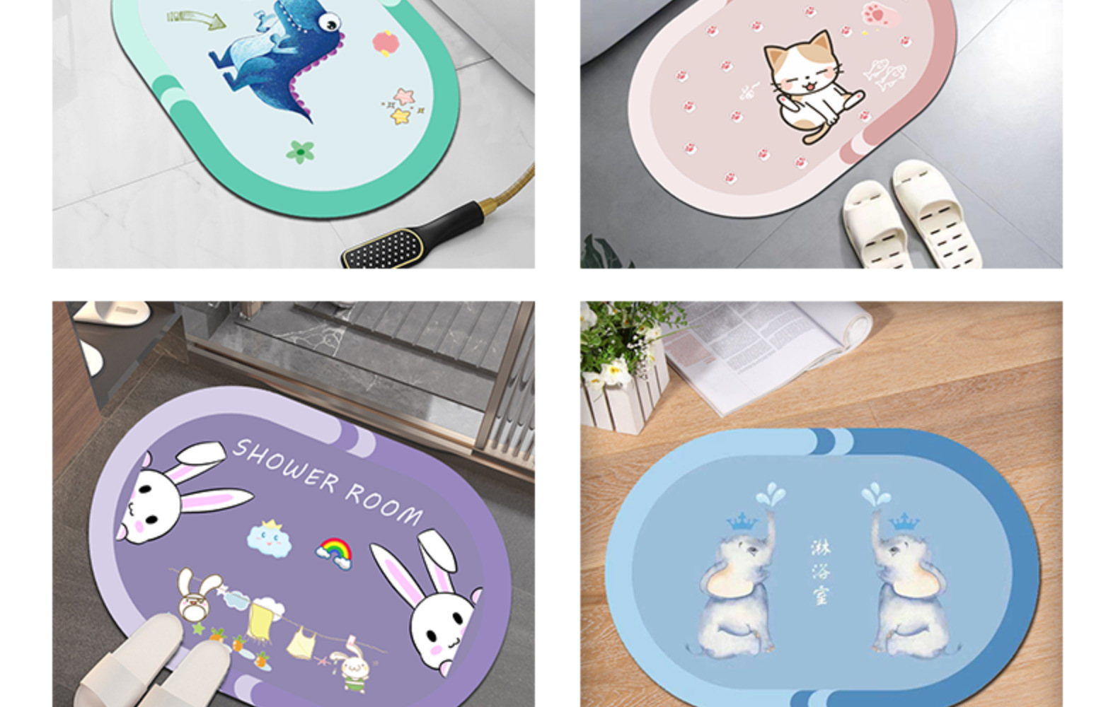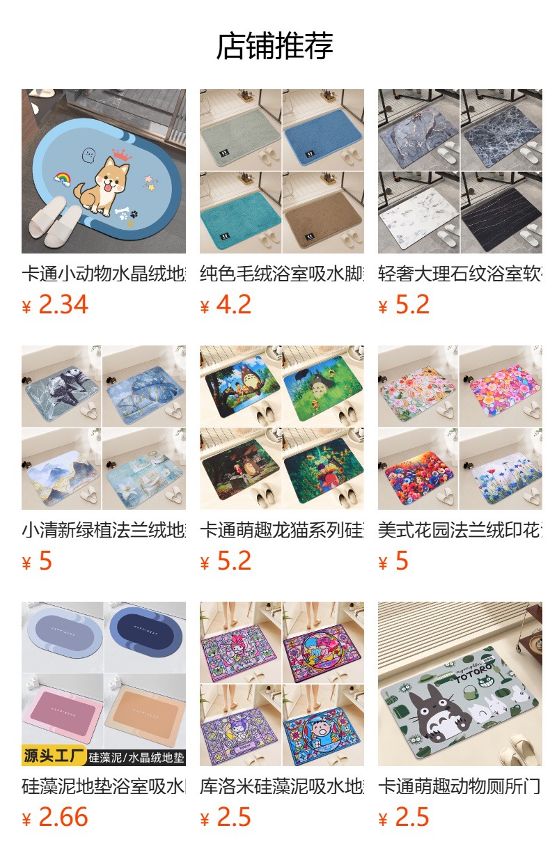 만화 작은 동물 크리스탈 벨벳 바닥 매트 어린이 방 거실 주방 미끄럼 방지 매트 욕실 문 흡수 카펫스토어 가기