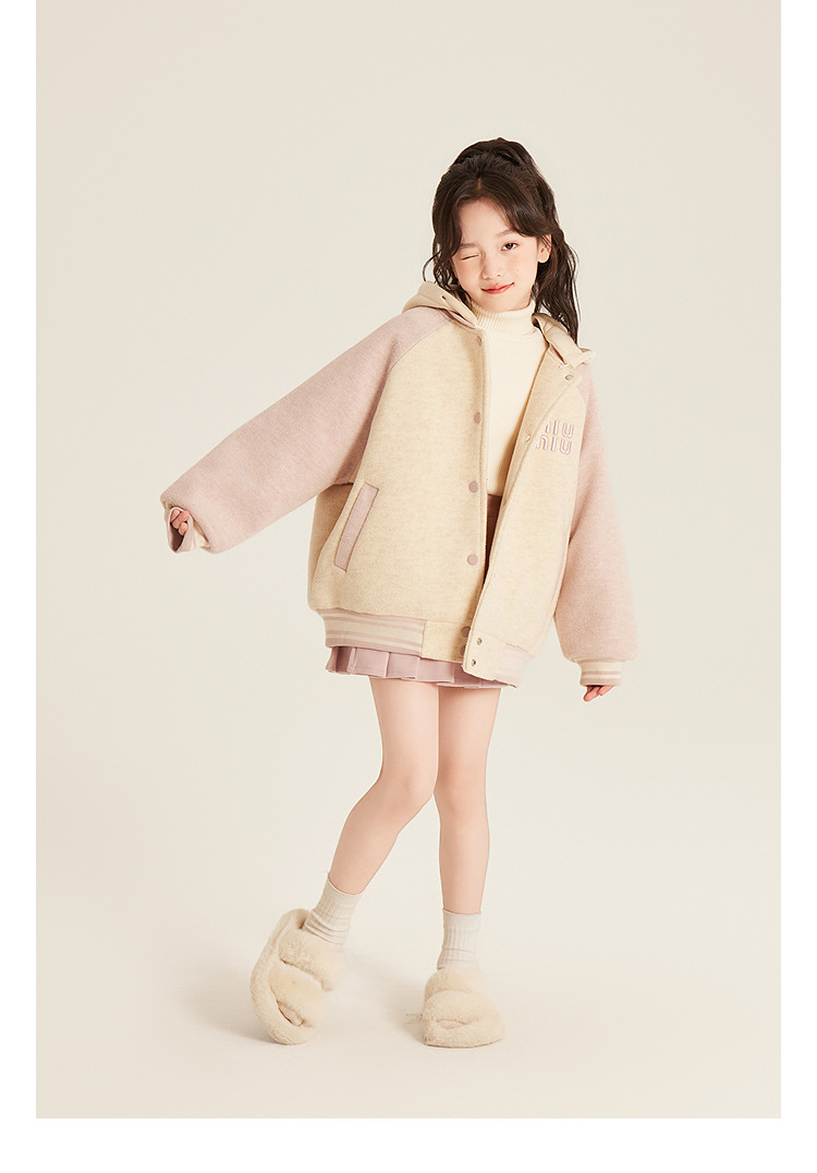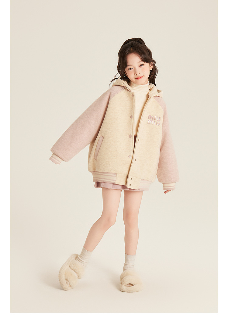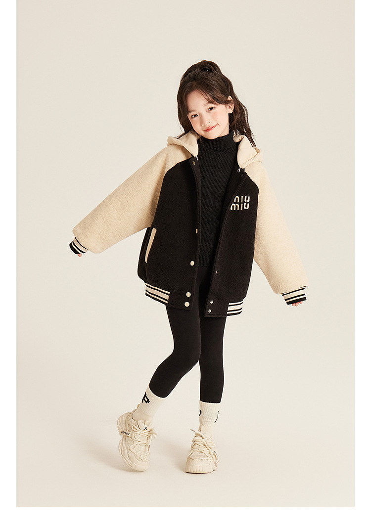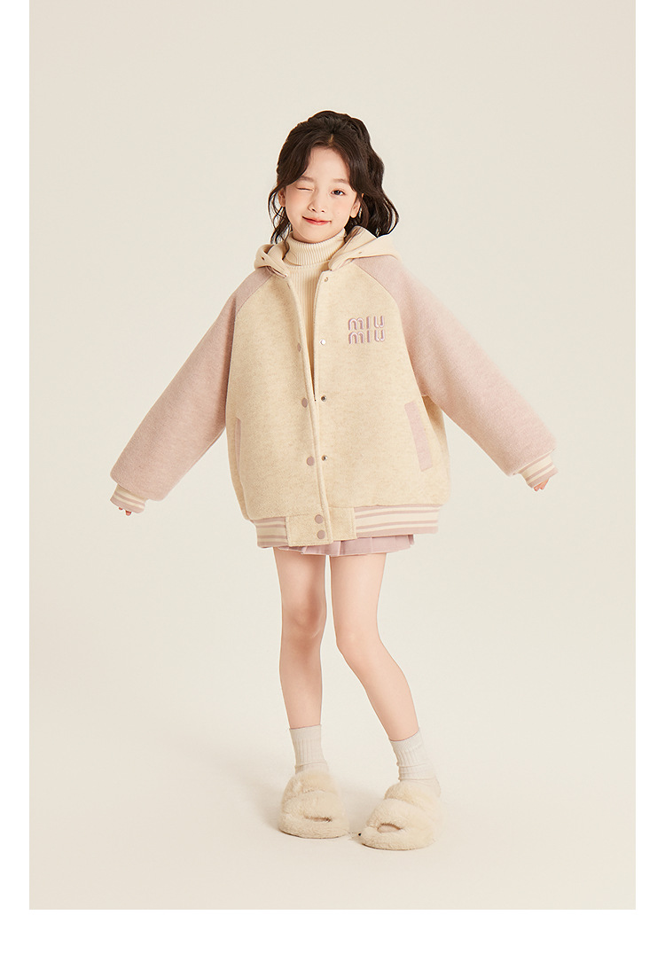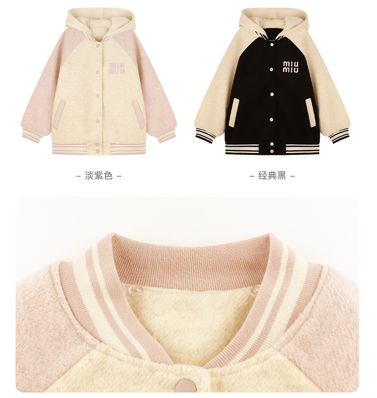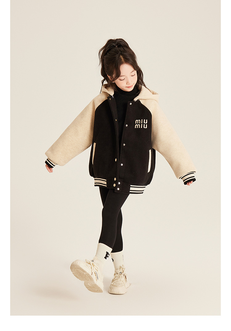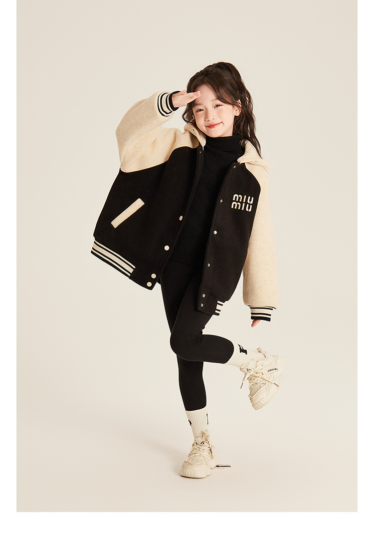 Amybaby Girls 'Top Winter 2024 New Miu Colorblock 후드 캐주얼 야구 코트
