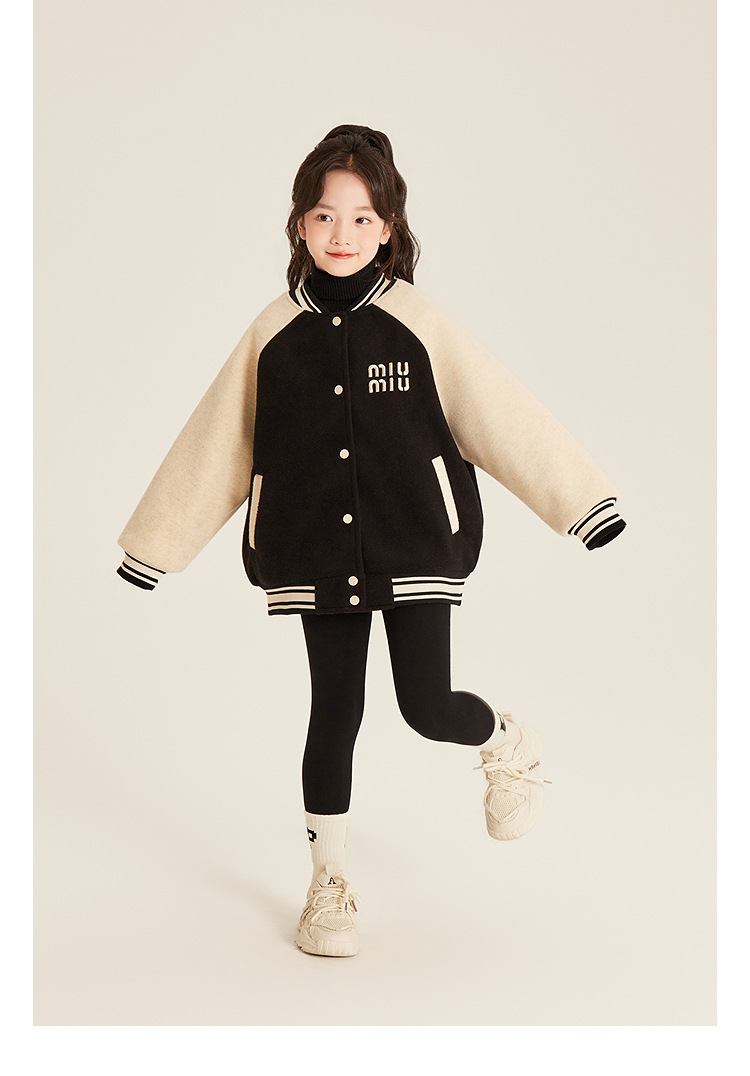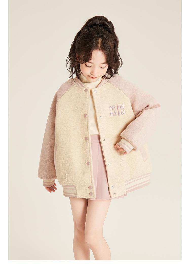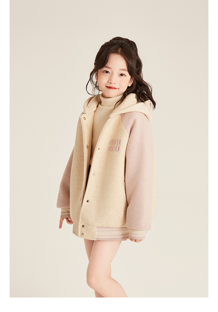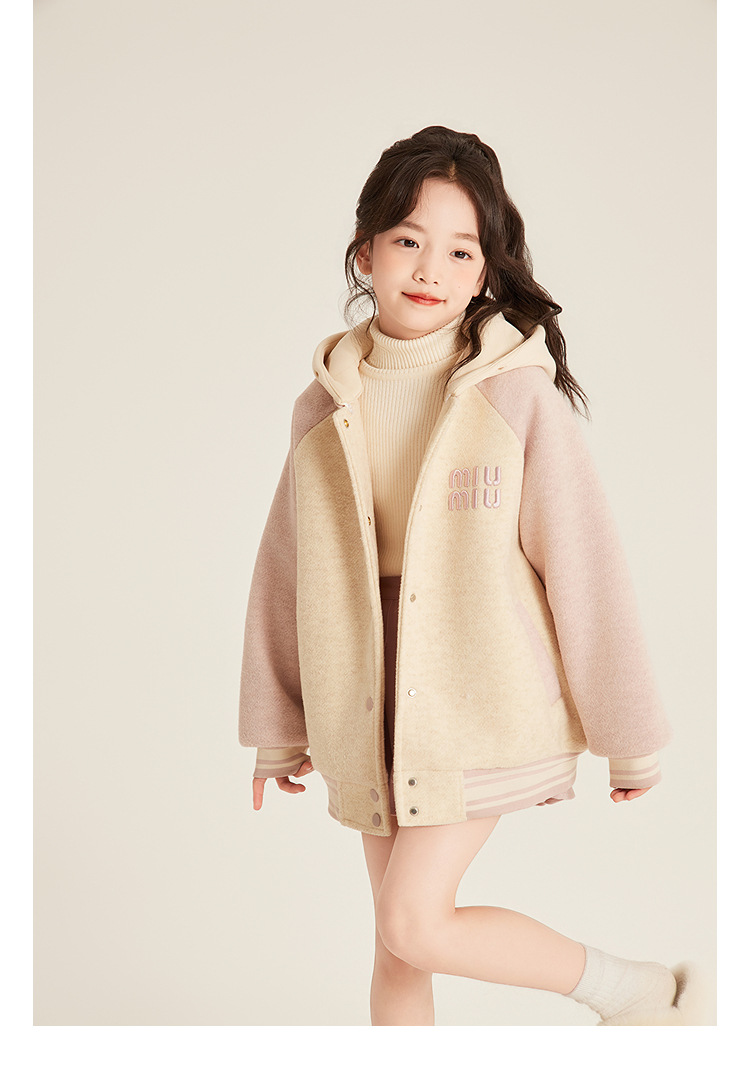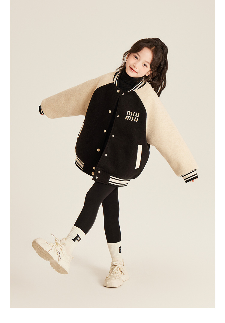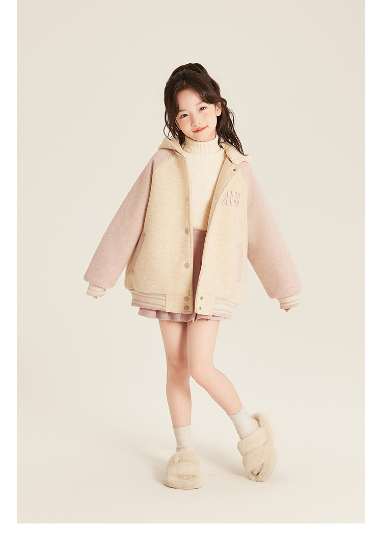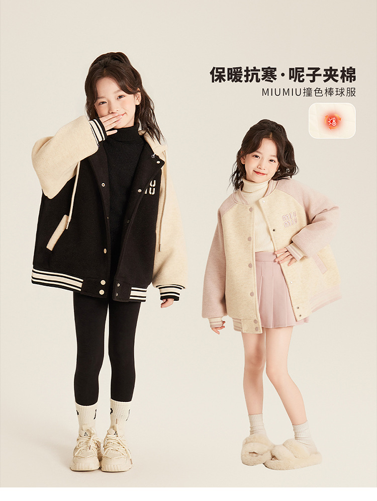 Amybaby Girls 'Top Winter 2024 New Miu Colorblock 후드 캐주얼 야구 코트