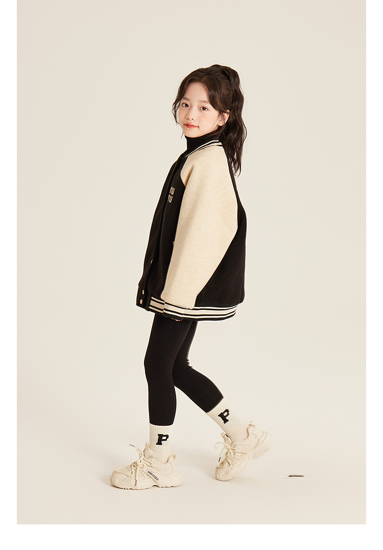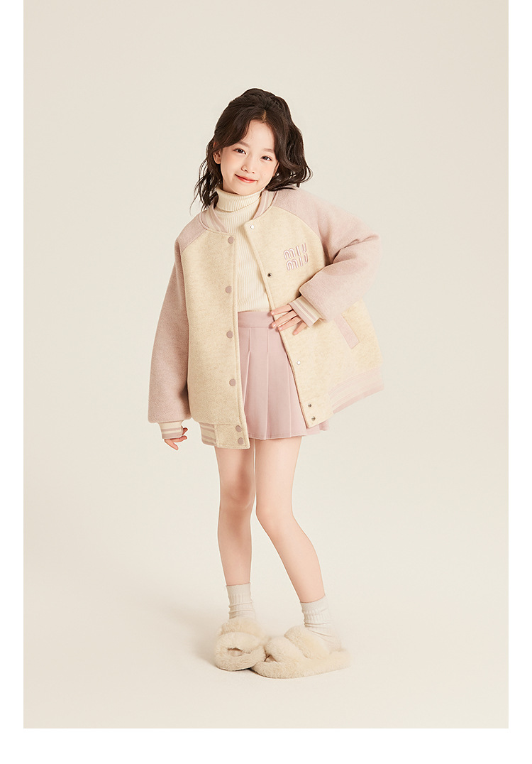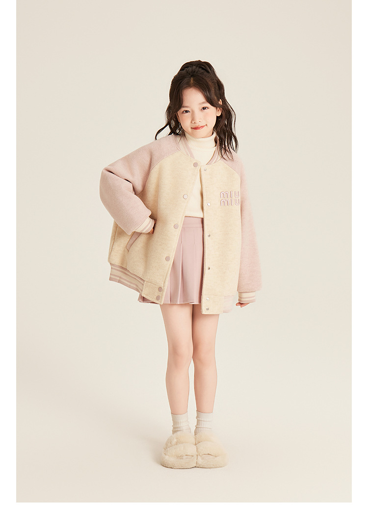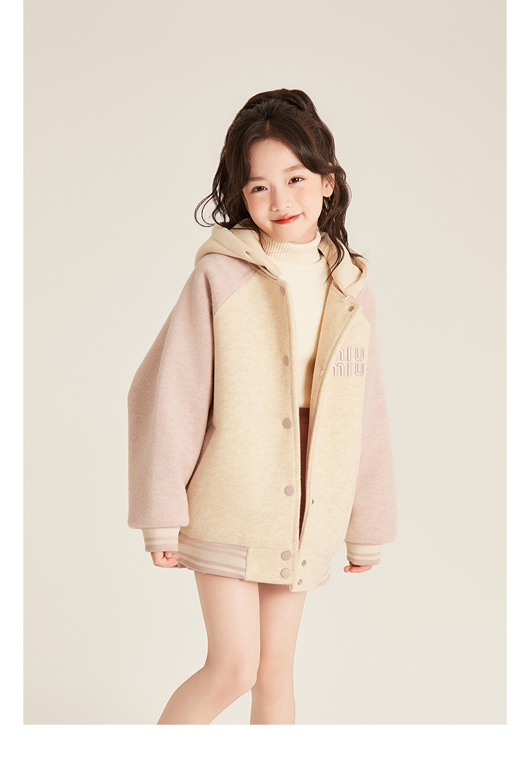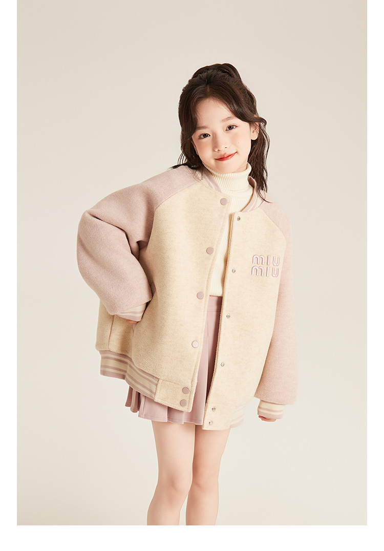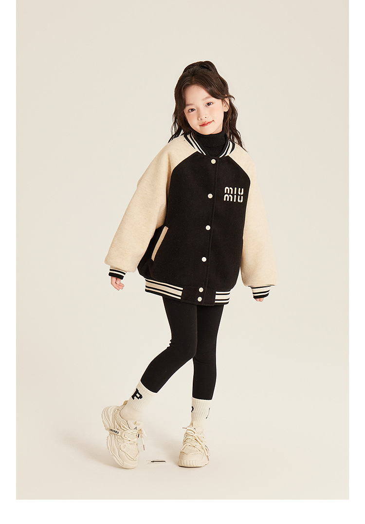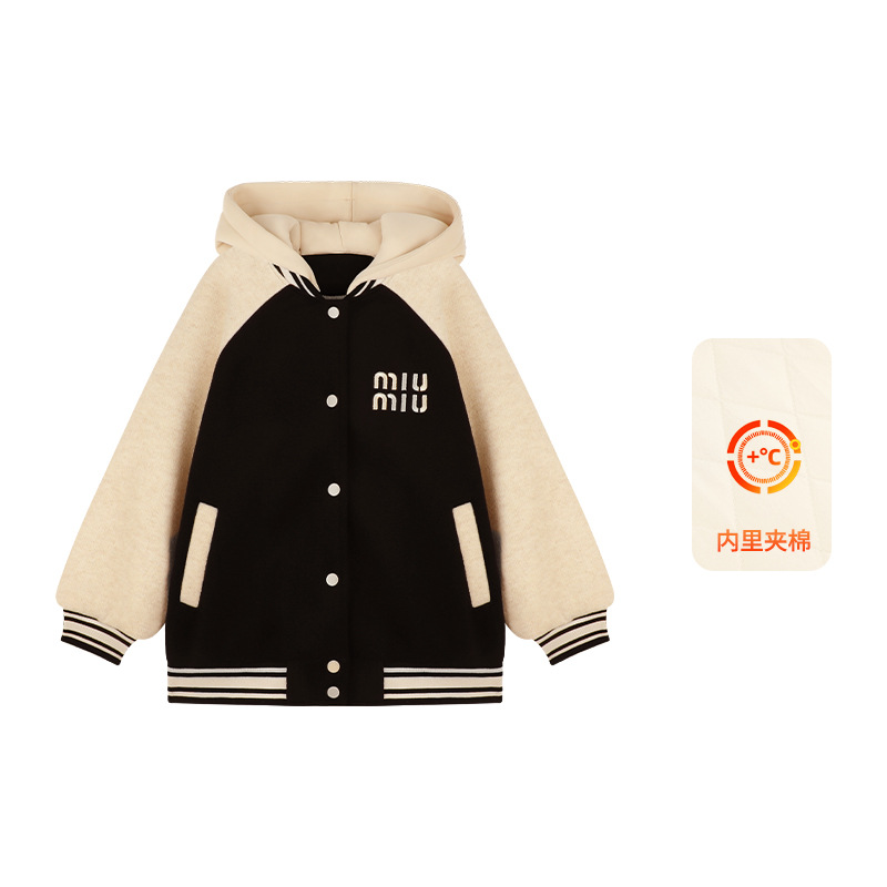 Amybaby Girls 'Top Winter 2024 New Miu Colorblock 후드 캐주얼 야구 코트