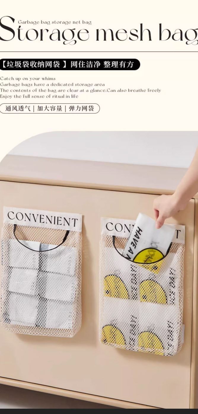 주방 쓰레기봉투 보관용품 플라스틱 봉투 매직망 주방문 벽걸이형 대용량 테이블탑 수납백