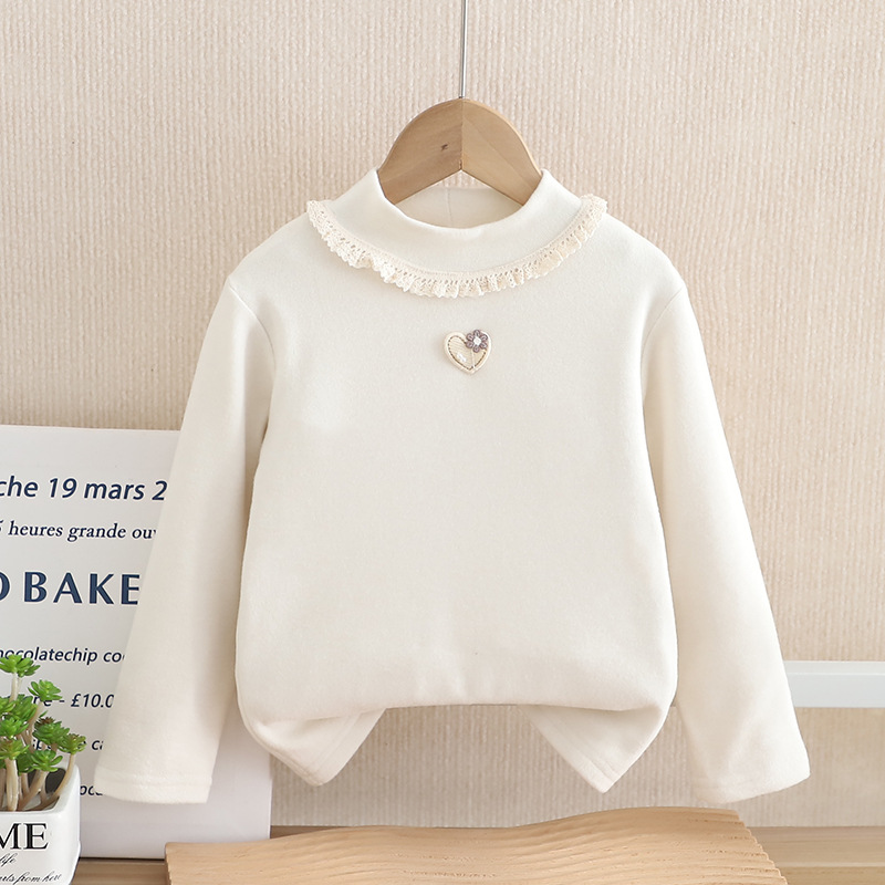소녀 소녀 아기 소녀 반 높이 칼라 기모 베이스 셔츠 아기의 원피스 벨벳 티셔츠 어린이 화이트 가을 겨울 두께