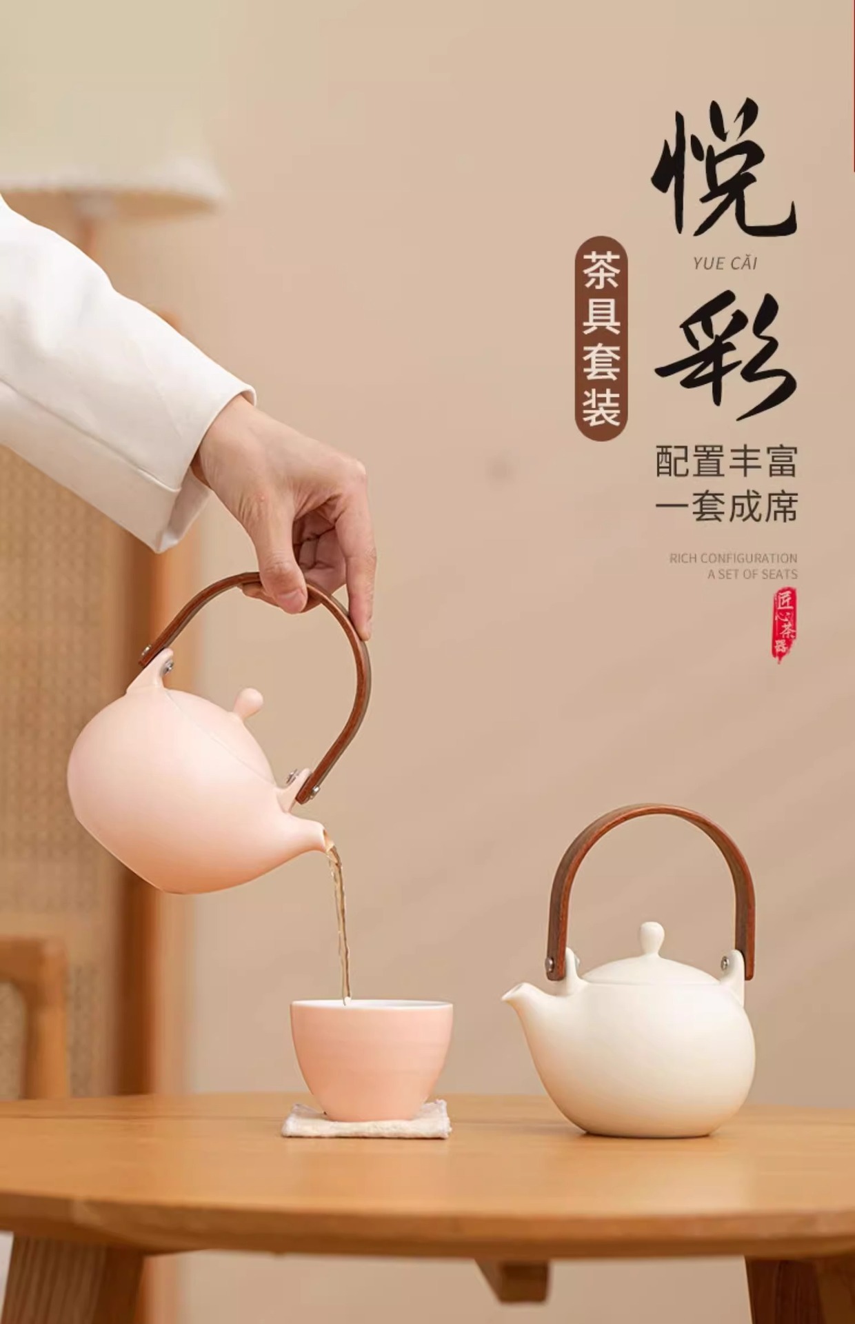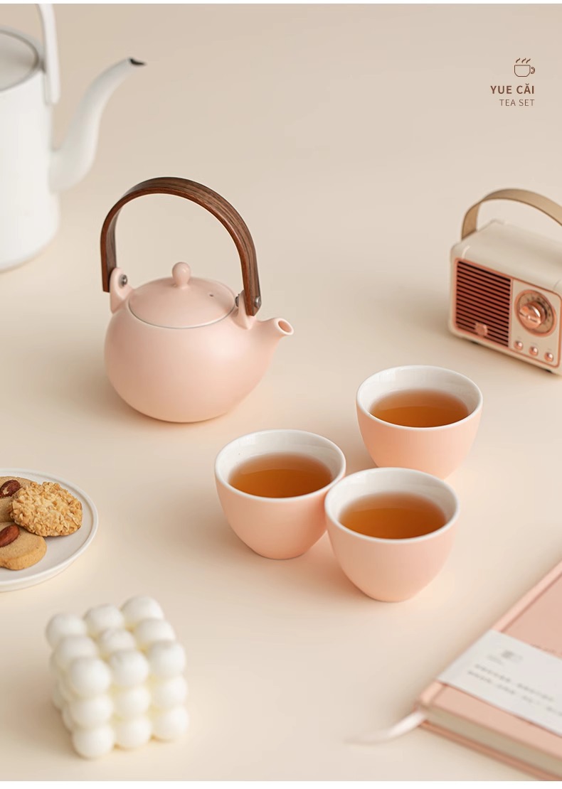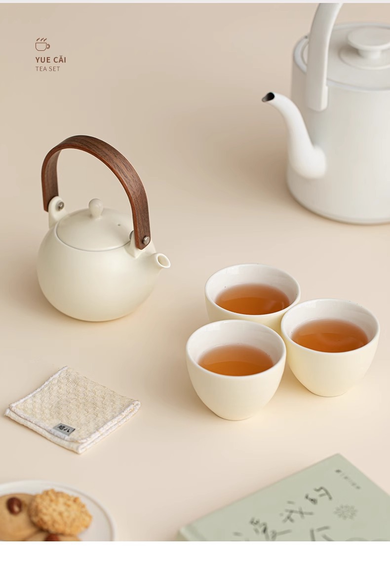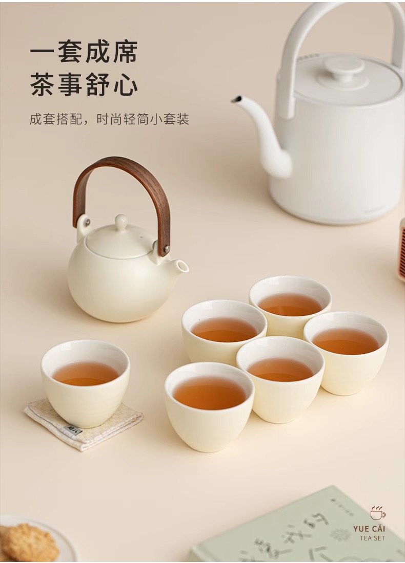 크림 노란색 간단한 쿵푸 차 세트 세트 홈 오피스 주전자 티 컵 하이 엔드 선물 고객 엘더를위한스토어 가기