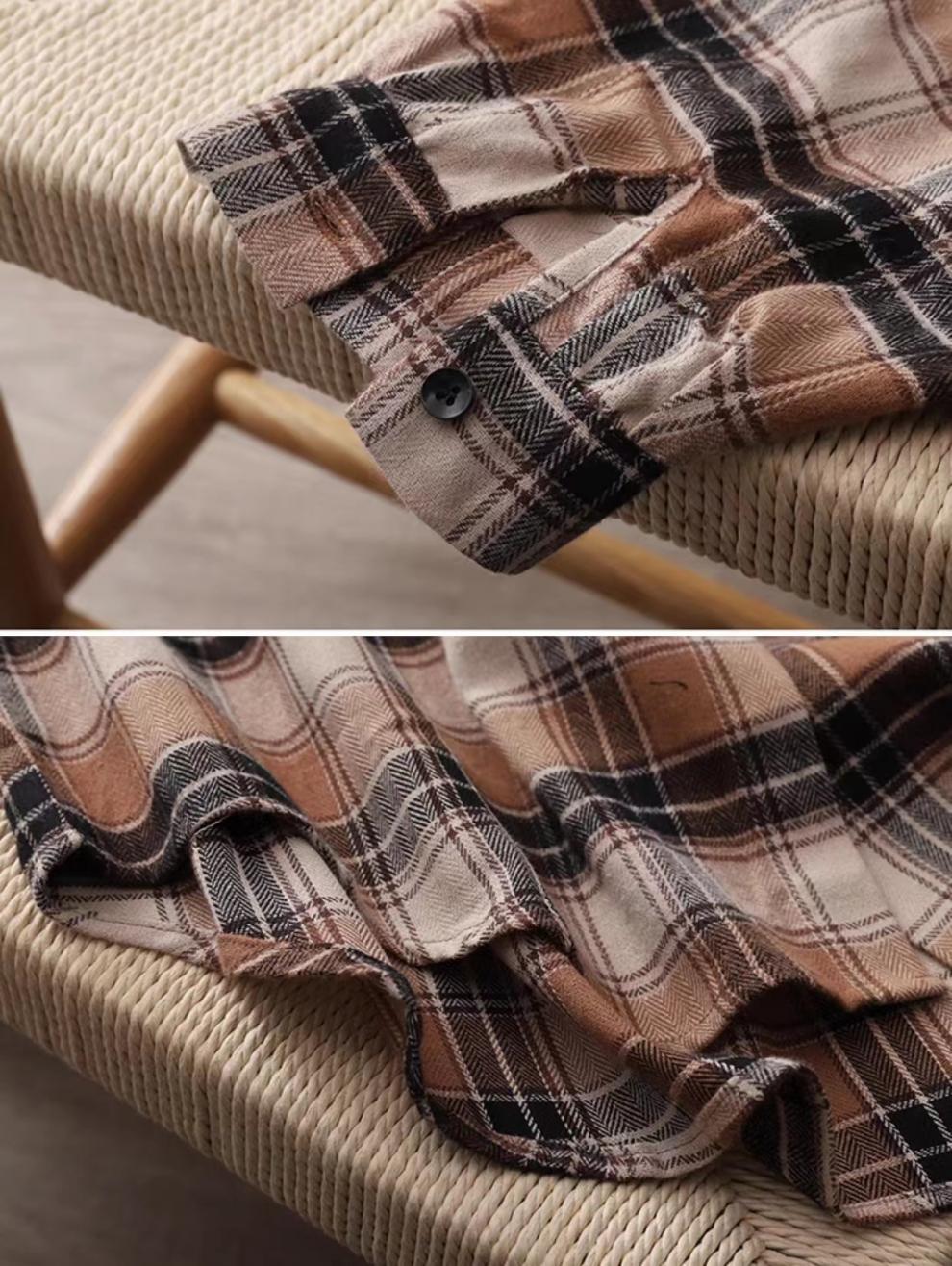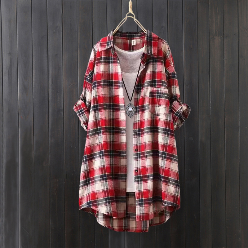 크로스보더 셔츠 체크무늬 셔츠 중간 길이 루즈핏 큰 사이즈 자외선 차단 셔츠 얇은 재킷 면마 혼방 상의 레트로스토어 가기