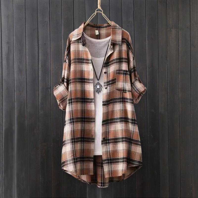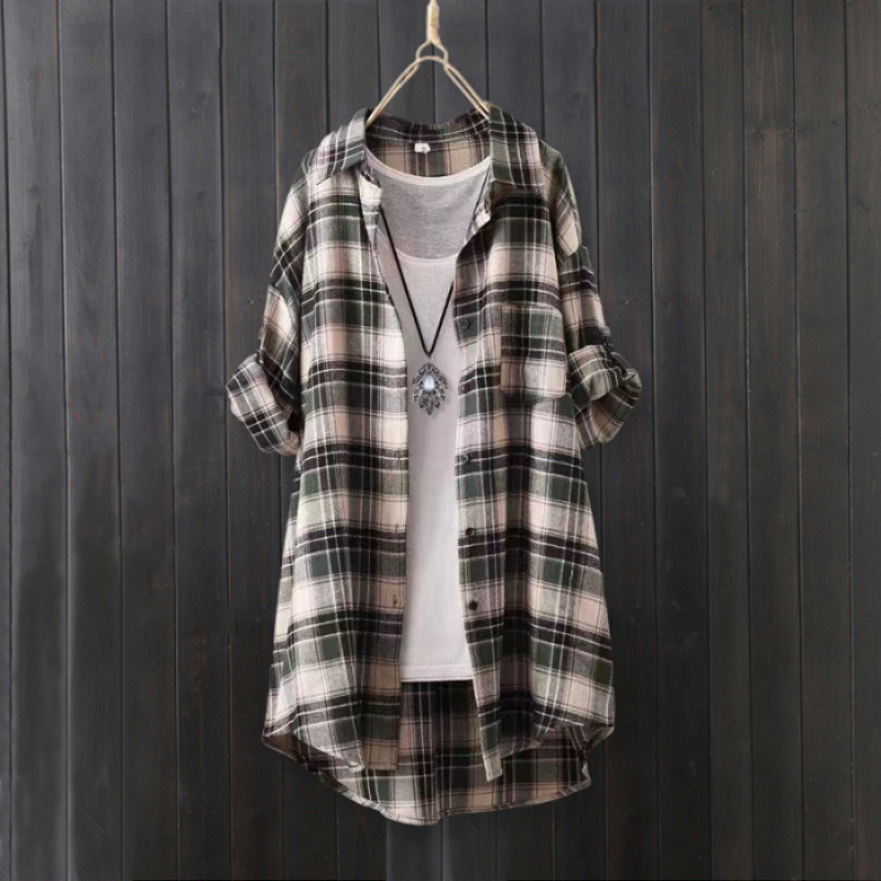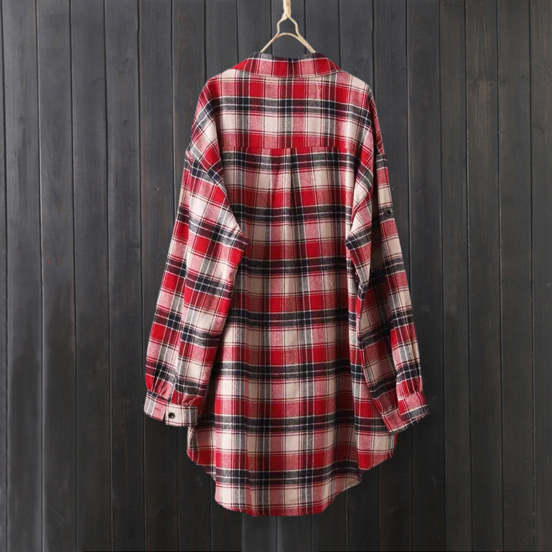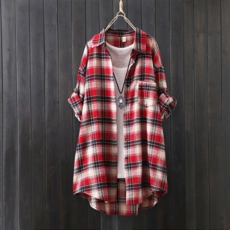 크로스보더 셔츠 체크무늬 셔츠 중간 길이 루즈핏 큰 사이즈 자외선 차단 셔츠 얇은 재킷 면마 혼방 상의 레트로