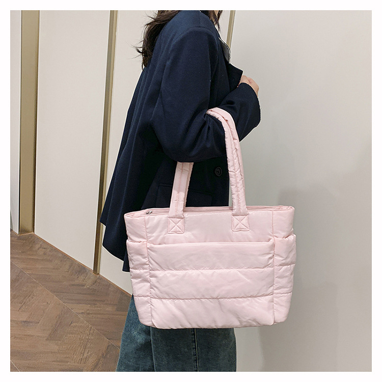 대외 무역 새로운 스타일 간단한 토트 백 여성 대용량 통근 핸드백 경량 나일론 천 대학생 어깨 가방