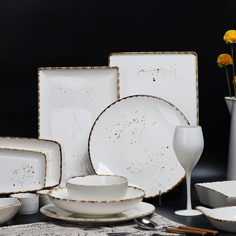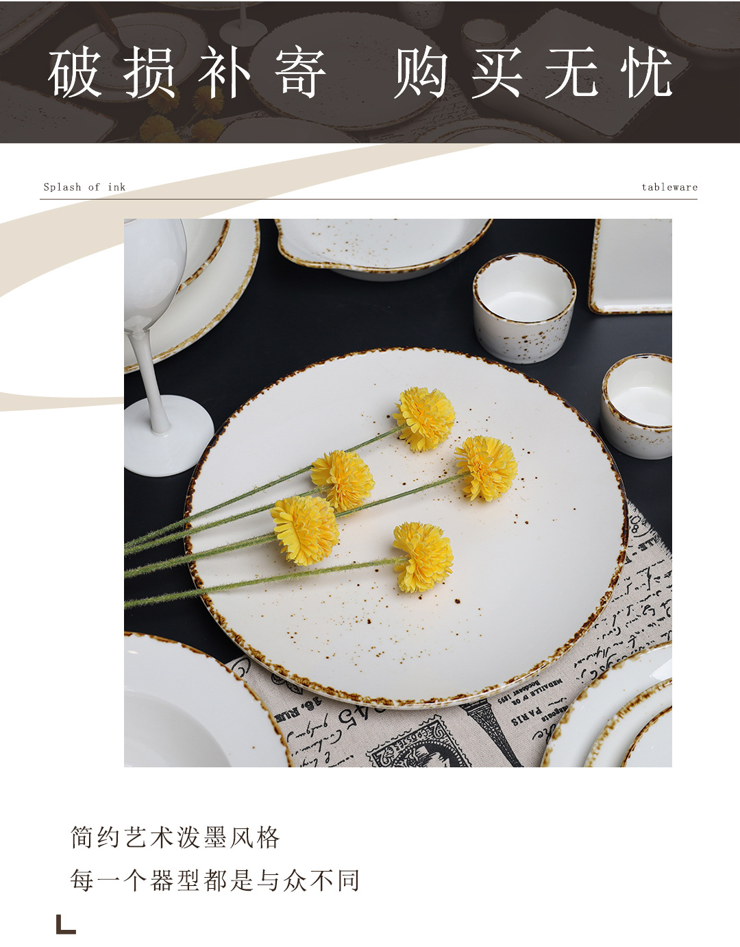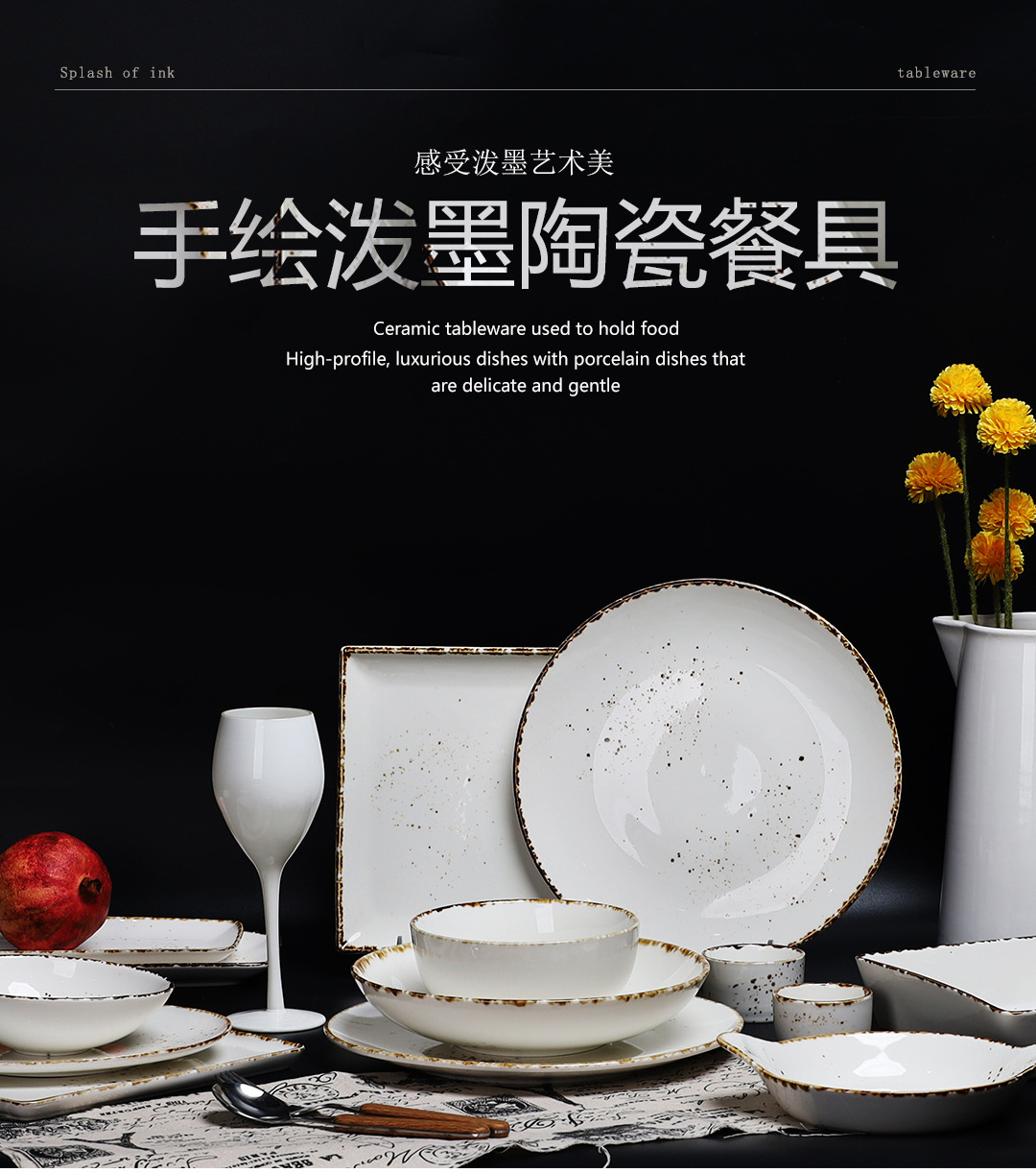 공장 도매 세라믹 식기 창조적 인 손으로 그린 접시 그릇 불규칙한 스플래시 잉크 디너 플레이트 서부 파스타 스테이크 플레이트