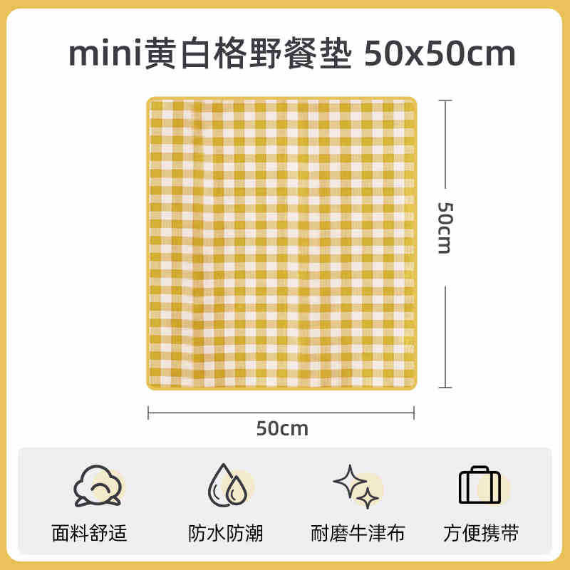 • [미니피크닉매트 2팩] 노란색과 흰색 체크무늬 0.5*0.5m (쿠션으로 사용 가능)