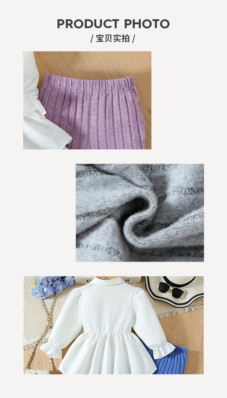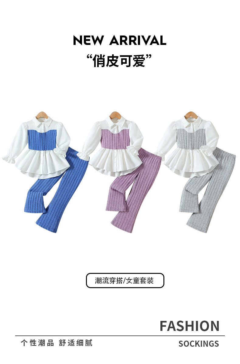국경 간 소녀 세트 핑크 니트 조끼 스티칭 레이스 셔츠 모직 바지 어린이 투피스 세트스토어 가기