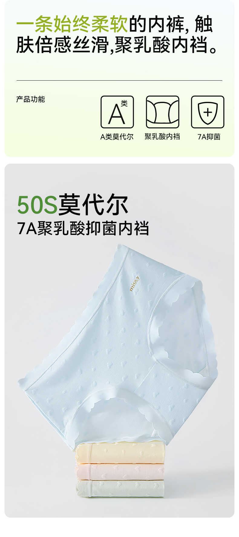 Kefei 50S 모달 속옷 여성용 폴리락트산 항균 가랑이 중간 허리 심리스 비 클램핑 소녀용 삼각형 반바지스토어 가기