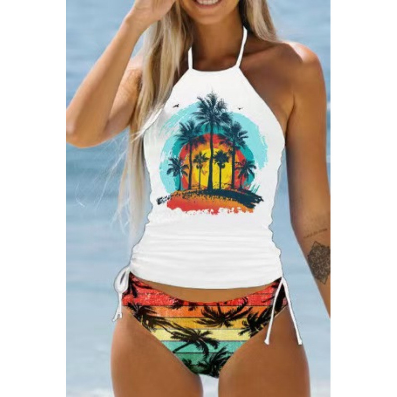 유럽과 미국의 뜨거운 수영복 여성의 섹시한 인쇄 스트랩 분할 비키니 플러스 사이즈 보수적 인 배꼽 덮개 슬림 비치 수영복스토어 가기