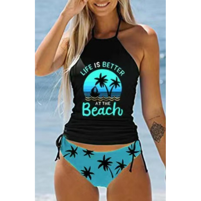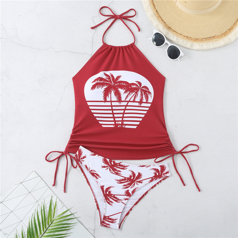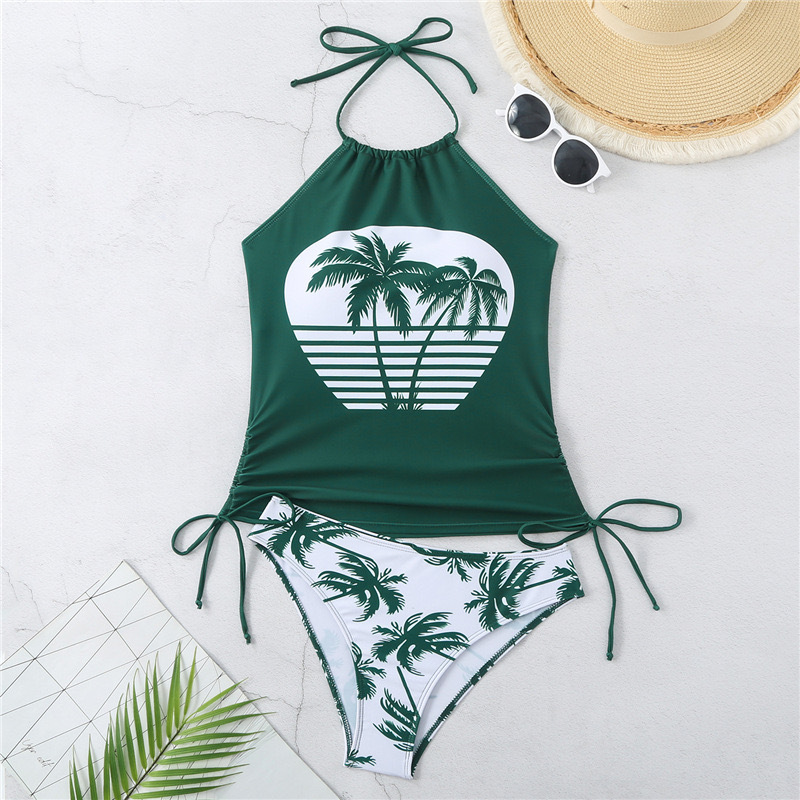 유럽과 미국의 뜨거운 수영복 여성의 섹시한 인쇄 스트랩 분할 비키니 플러스 사이즈 보수적 인 배꼽 덮개 슬림 비치 수영복