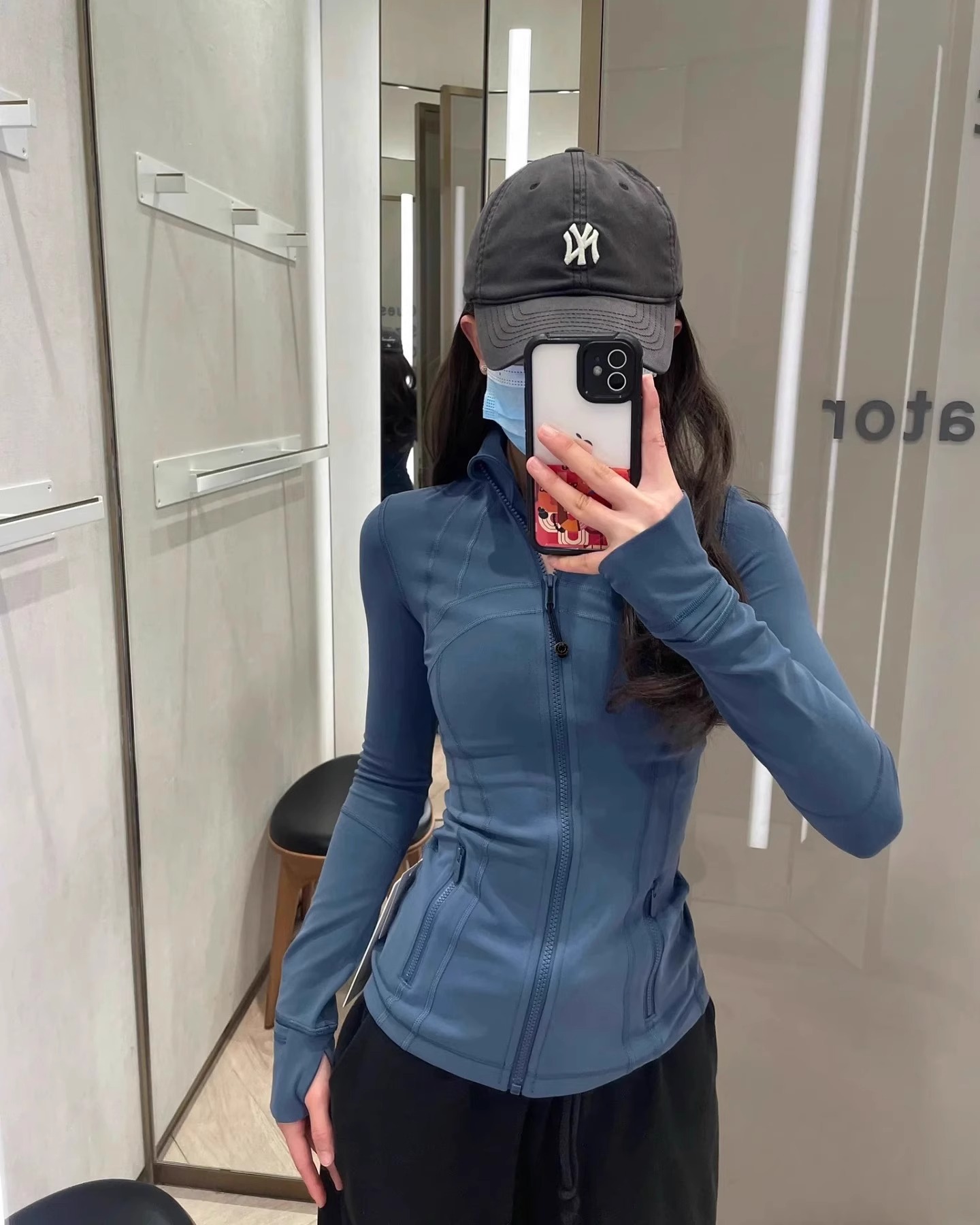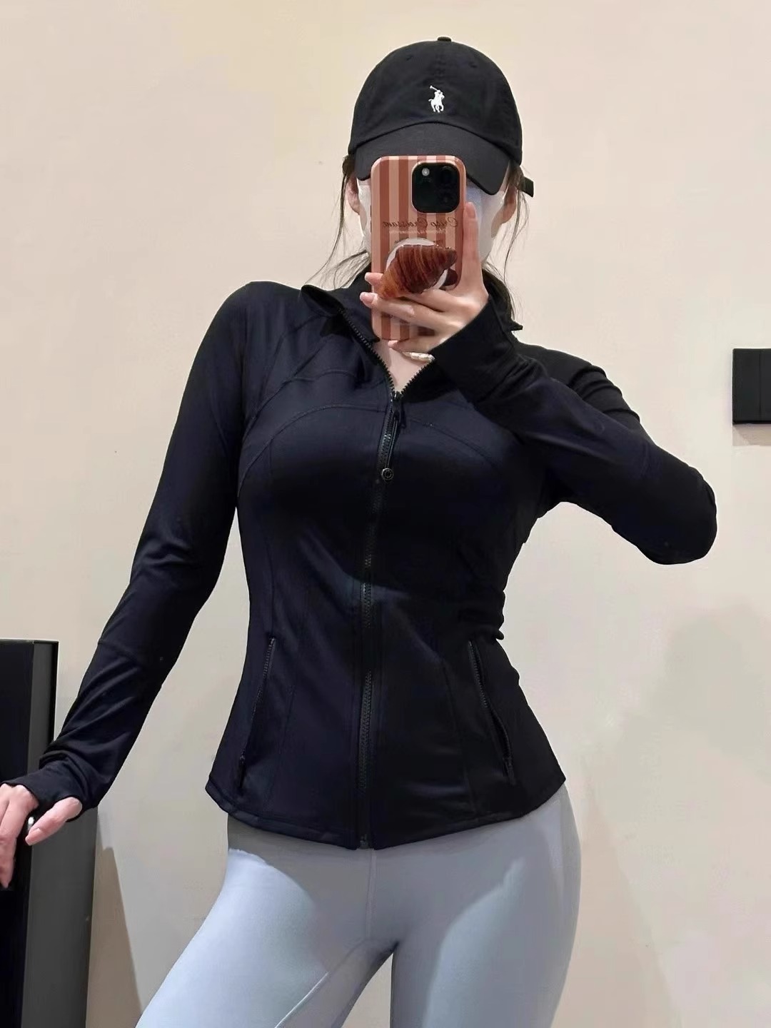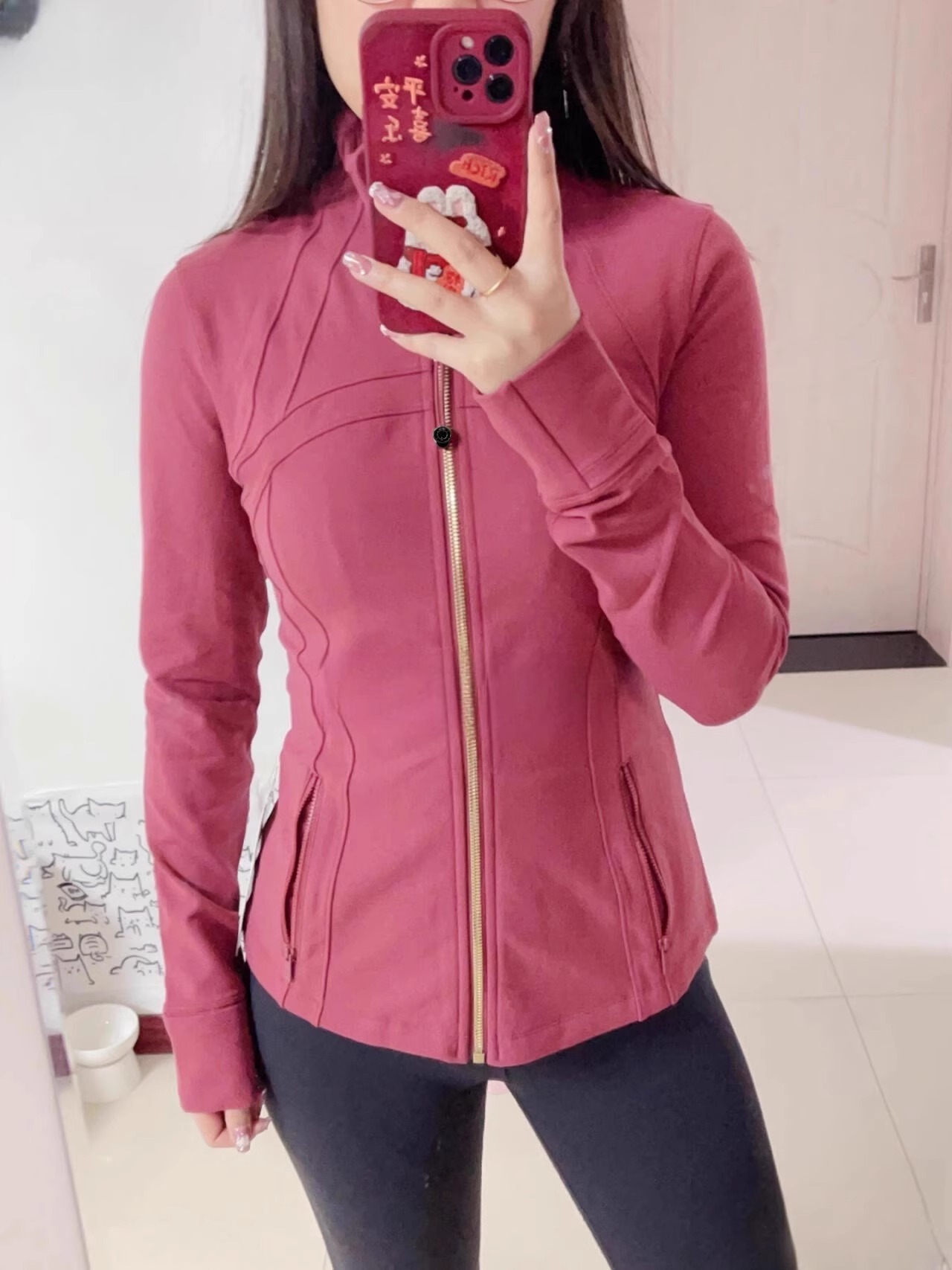 Lulu 요가 세트 여성용 벌거 벗은 자켓 수직 칼라 슬림 긴 소매 달리기 피트니스 지퍼 스포츠 탑스토어 가기