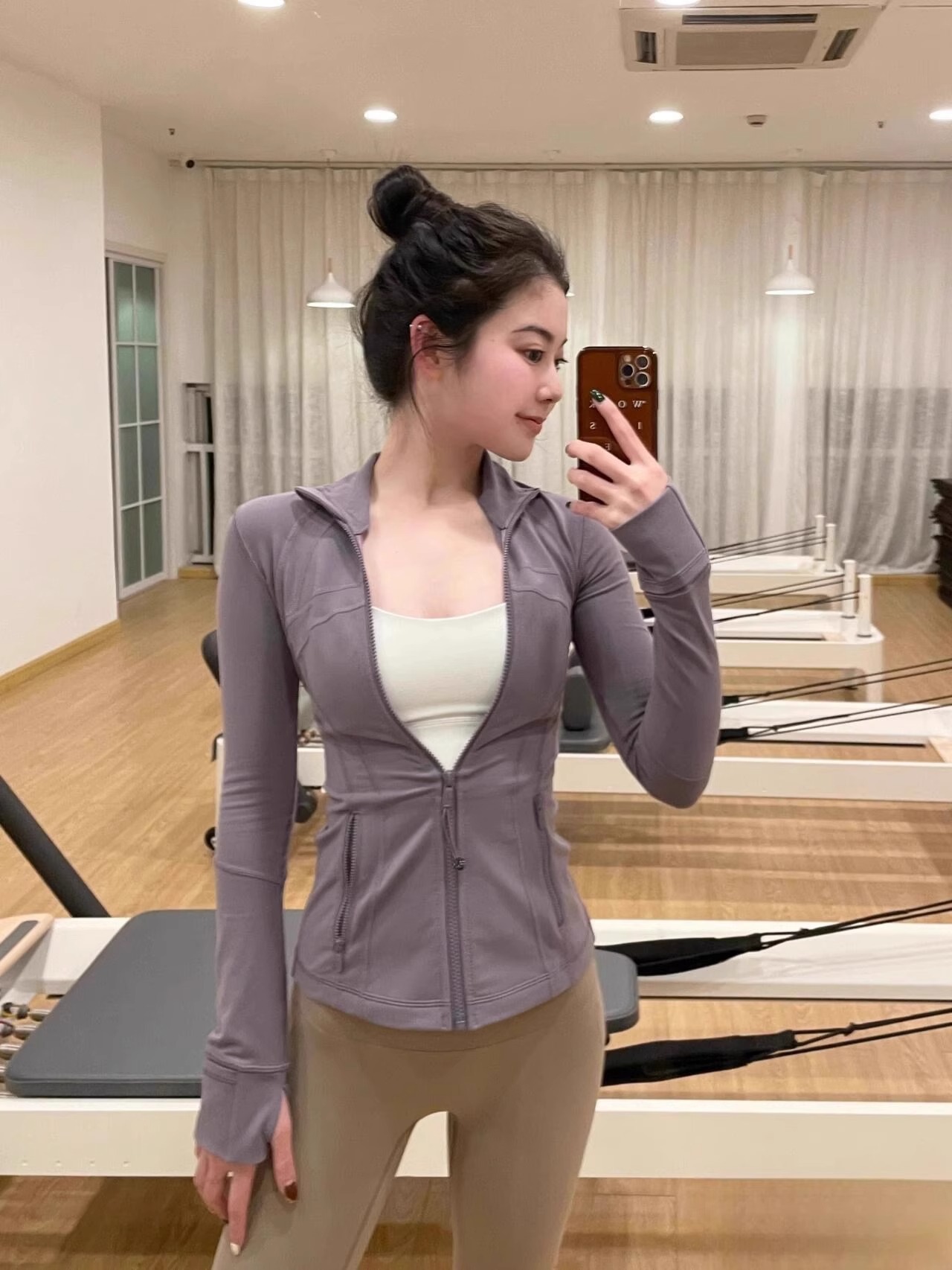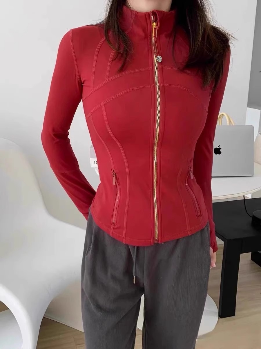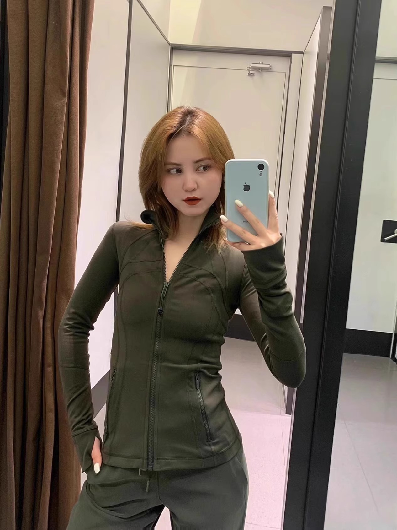 Lulu 요가 세트 여성용 벌거 벗은 자켓 수직 칼라 슬림 긴 소매 달리기 피트니스 지퍼 스포츠 탑스토어 가기