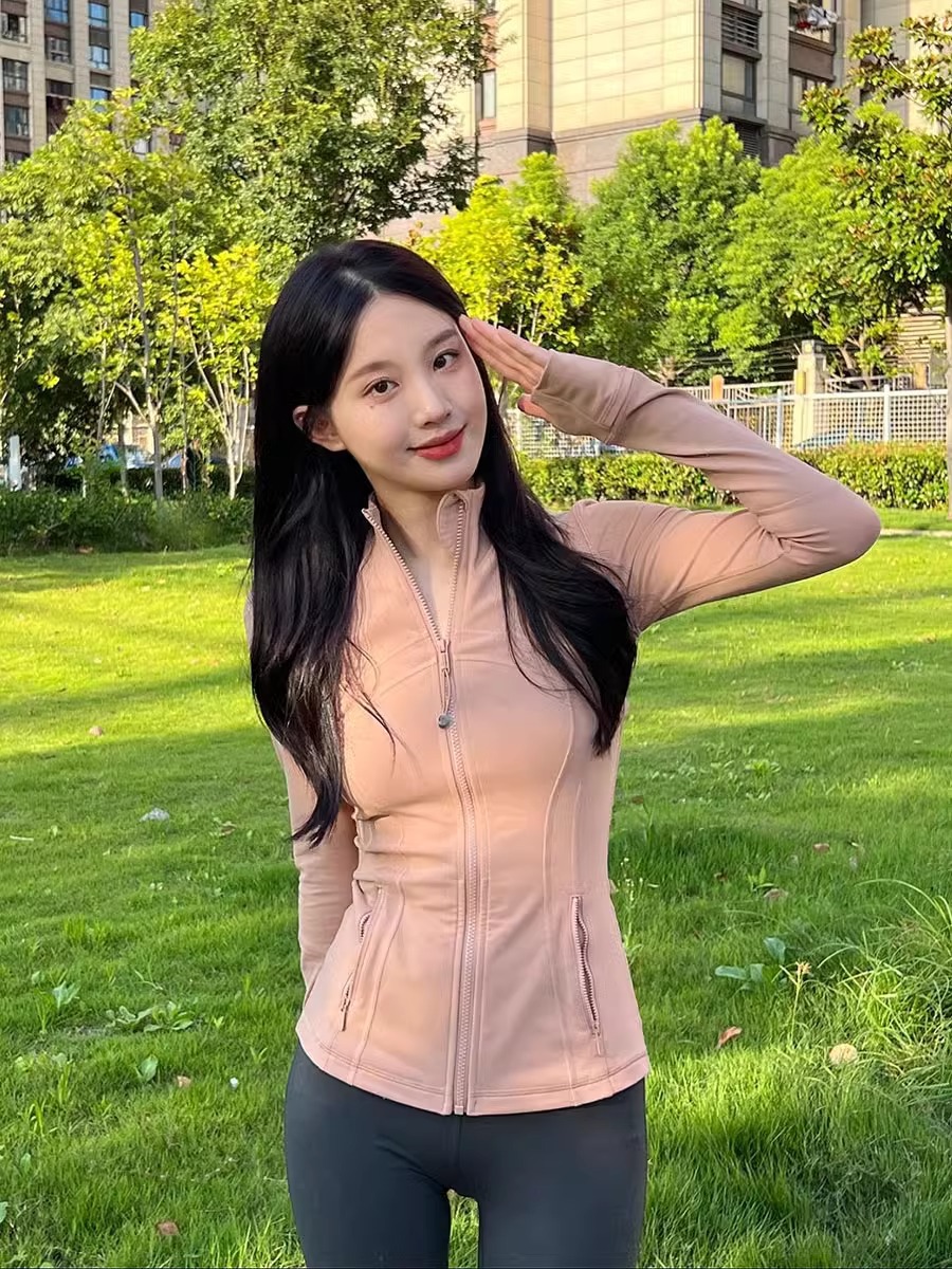 Lulu 요가 세트 여성용 벌거 벗은 자켓 수직 칼라 슬림 긴 소매 달리기 피트니스 지퍼 스포츠 탑