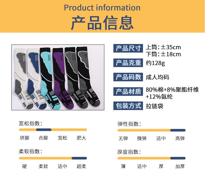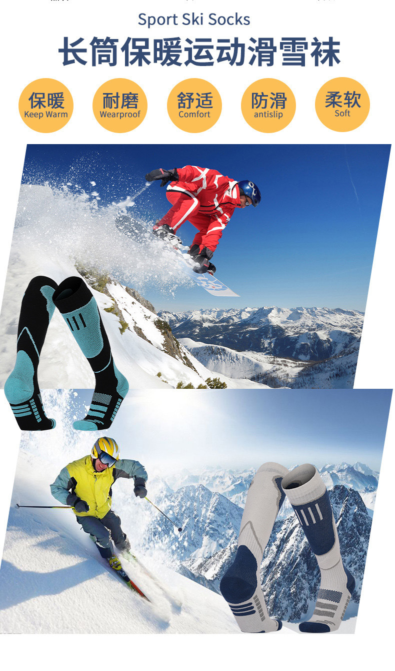 남성과 여성을위한 두꺼운 따뜻한 스키 양말 통기성 미끄럼 방지 타월 양말 높은 튜브 흡수성 등산 양말 높은 튜브 등산 양말