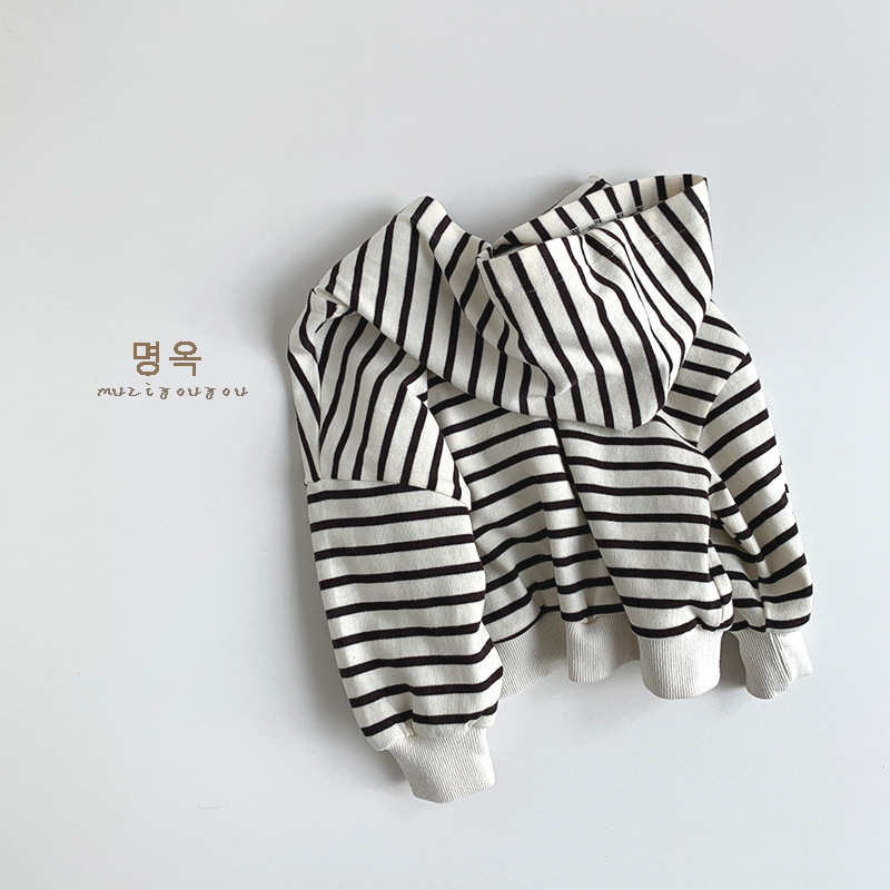 줄무늬 조종 봄옷 소년 소녀 줄무늬 코트 2025 새 아기 어린이 한국 캐주얼 후드 탑