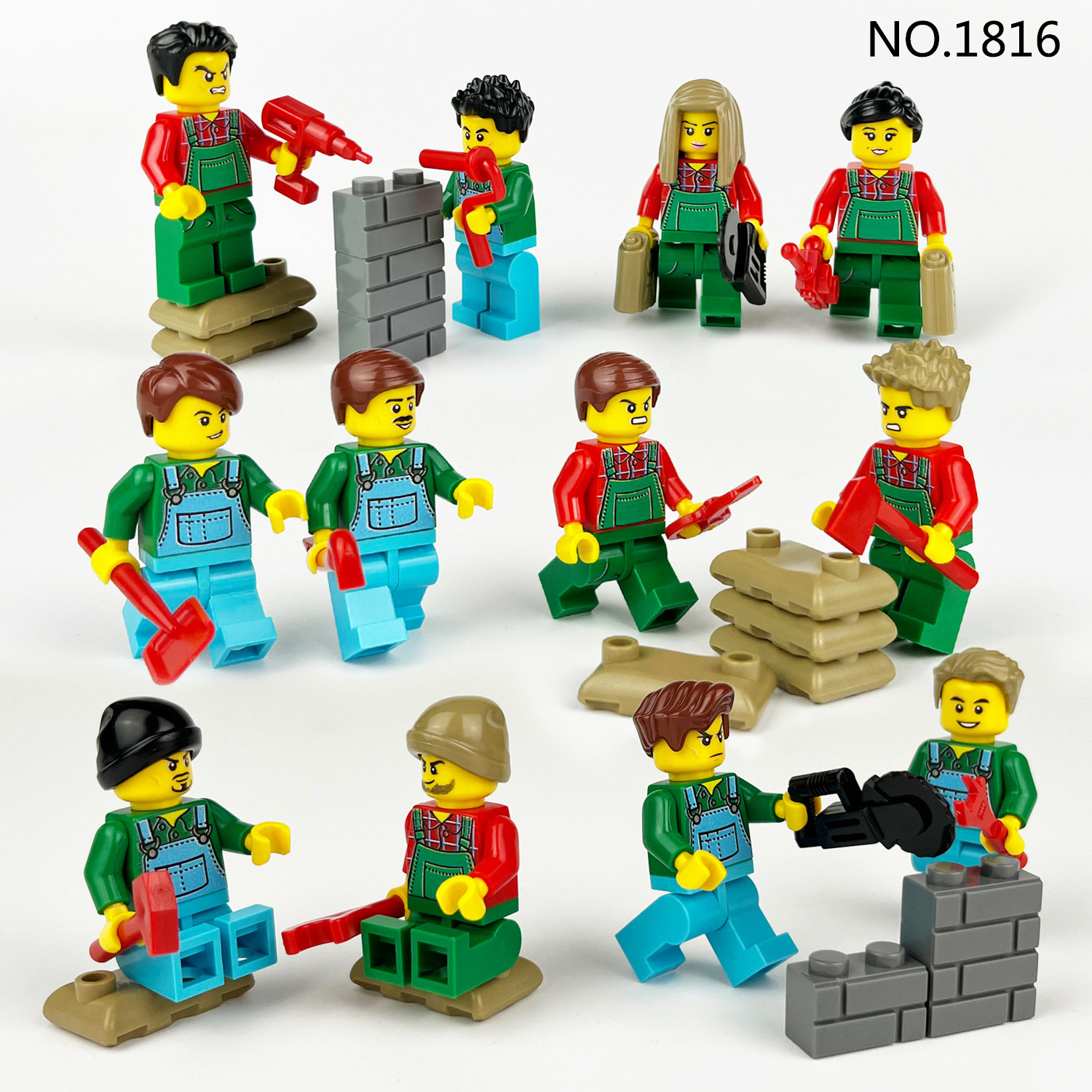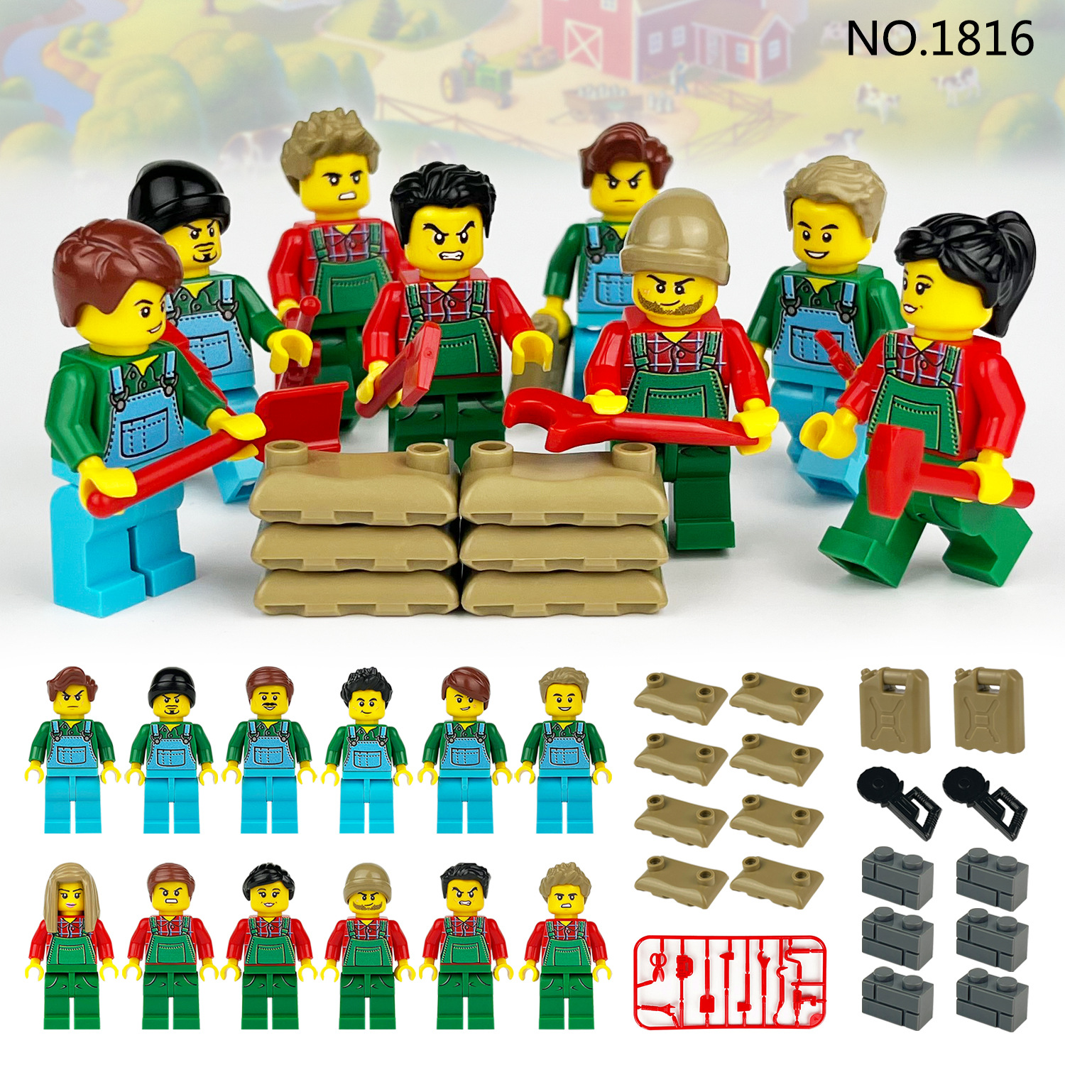 국경 간 도매 M1816 농장 농부 농부 건물 블록 작은 입상 도시 현장 장난감 세트 12