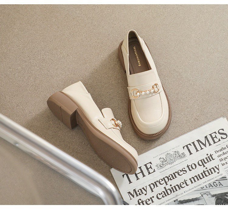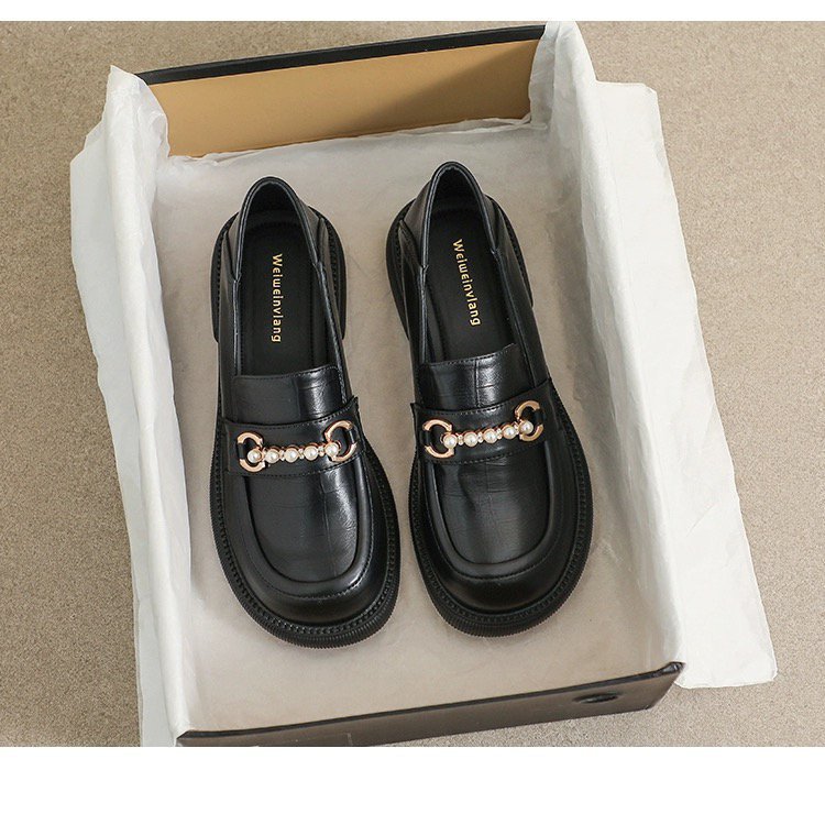 두꺼운 바닥 로퍼 여성의 2025 봄 새로운 패션 다목적 여성 신발 복고풍 영국 스타일의 낮은 뒤꿈치 작은 가죽 신발스토어 가기