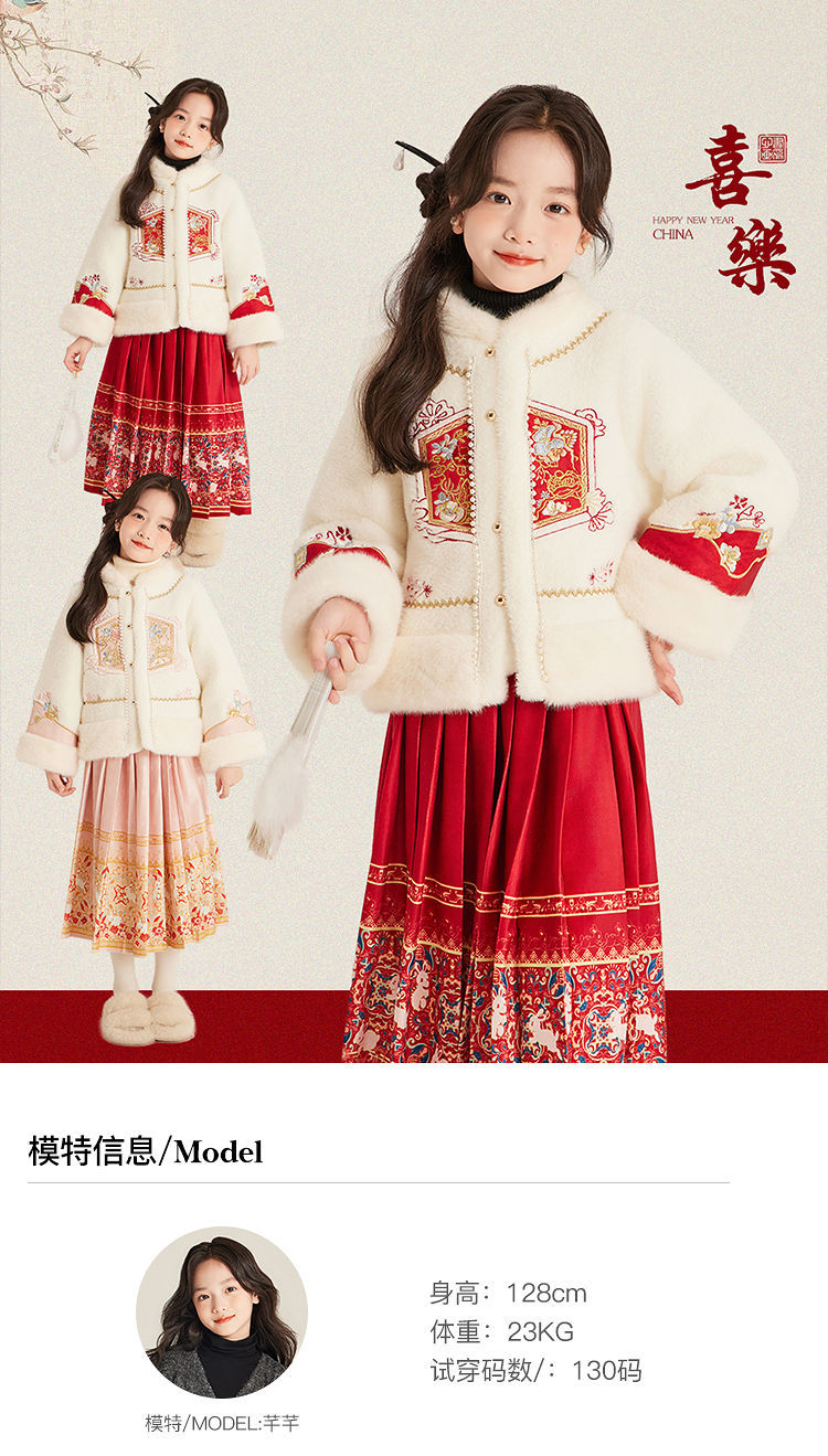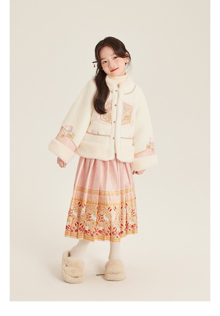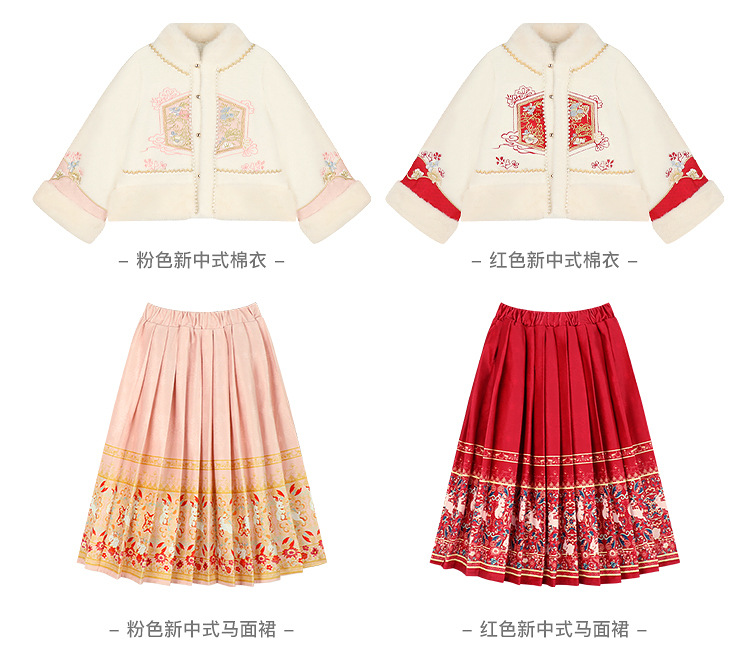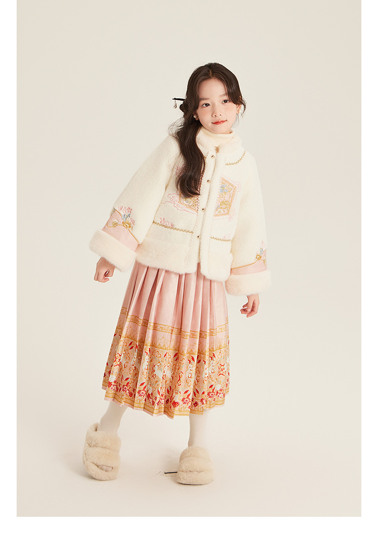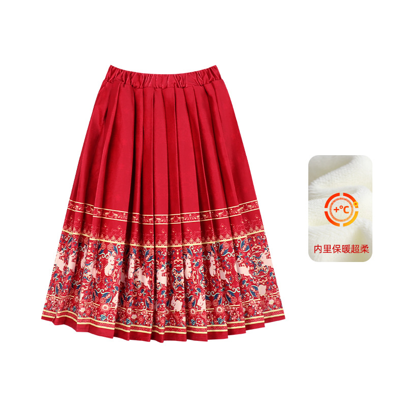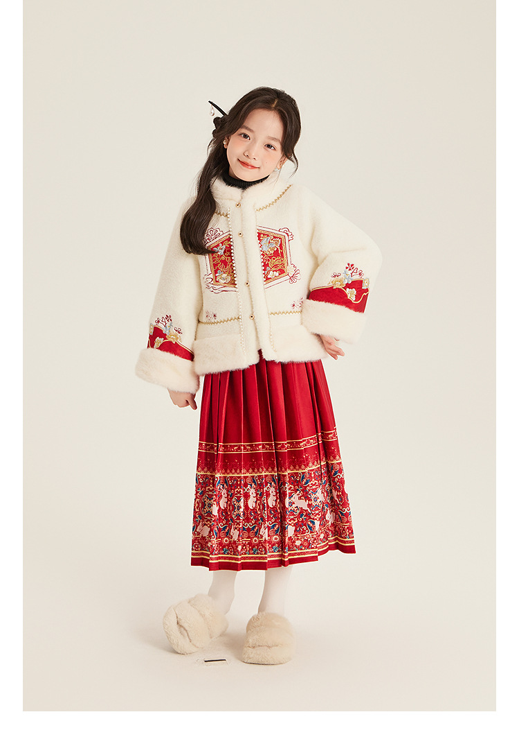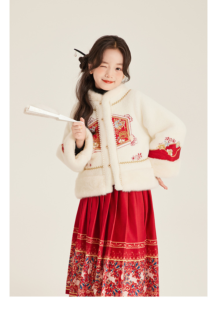 Amybaby Girls 세트 겨울 2024 새로운 중국 스타일 Futu 봄 시퀀스 두꺼운 최고 국가 스타일 말 얼굴 치마