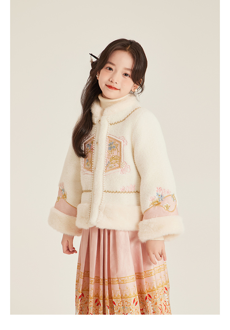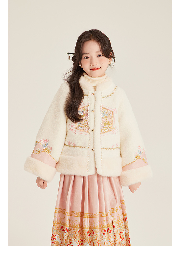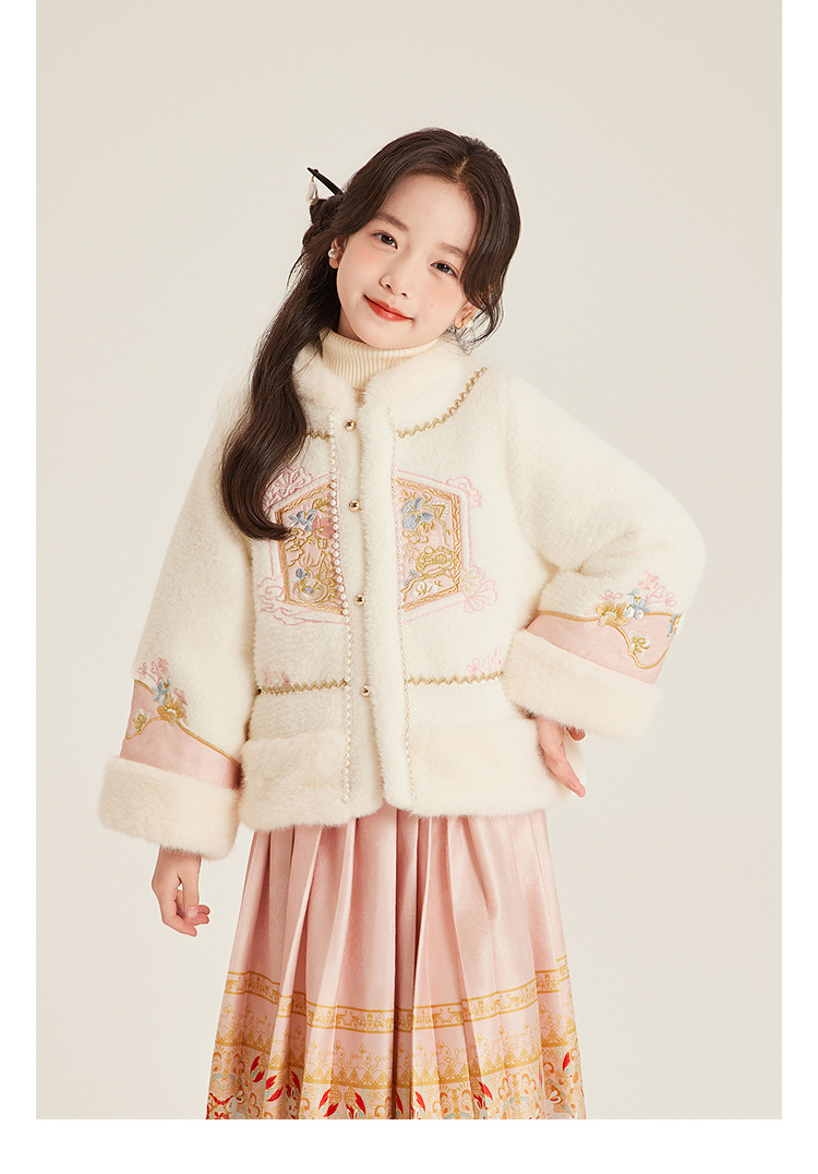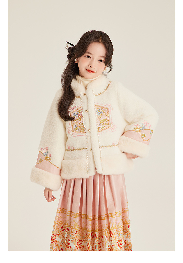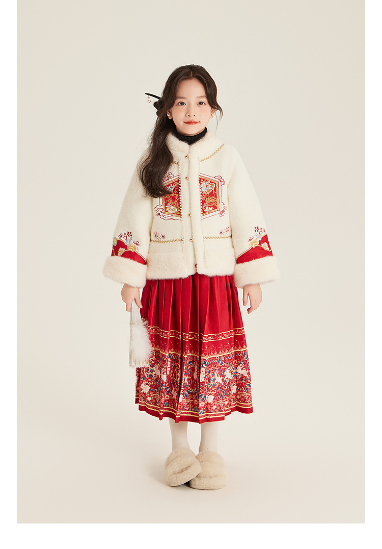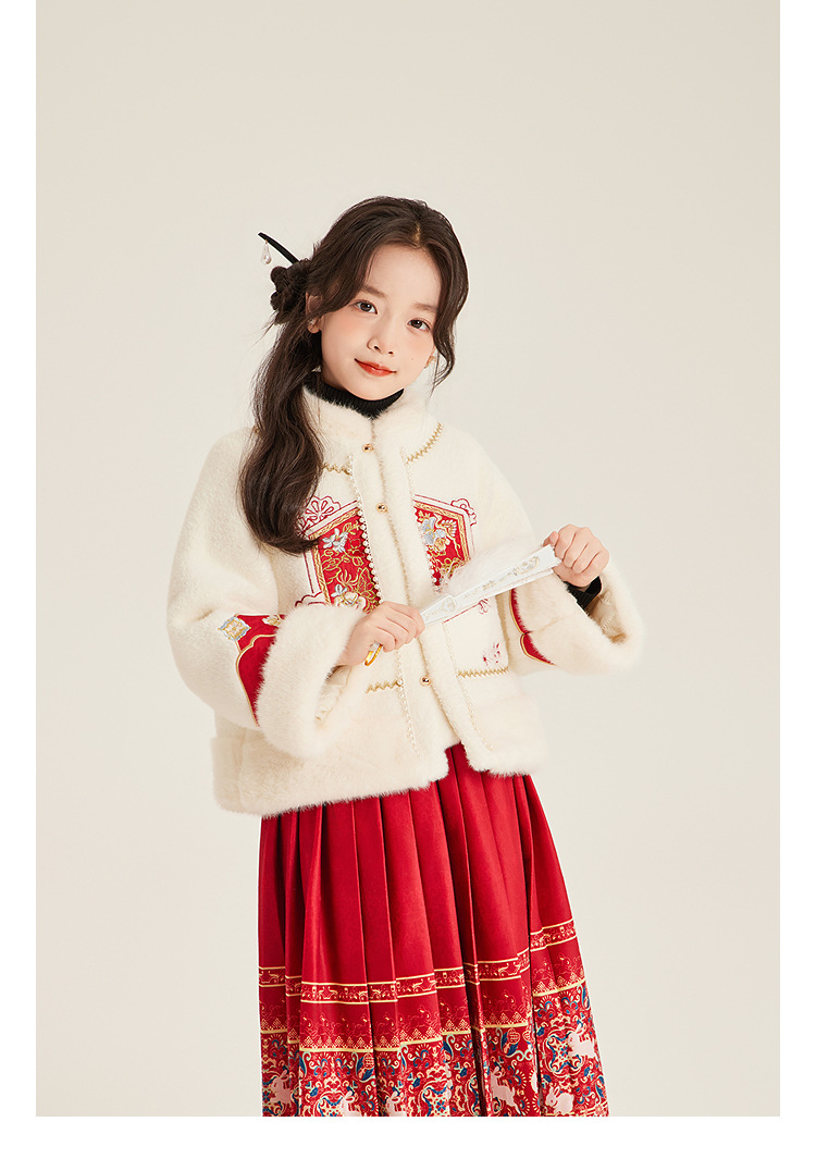 Amybaby Girls 세트 겨울 2024 새로운 중국 스타일 Futu 봄 시퀀스 두꺼운 최고 국가 스타일 말 얼굴 치마