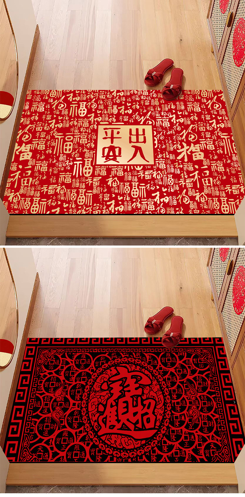 새해 홈 비푸 바닥 매트 2025 입구 크리스탈 벨벳 레드 도어 매트 새로운 중국 스타일 선물 비푸 카펫 발 매트스토어 가기