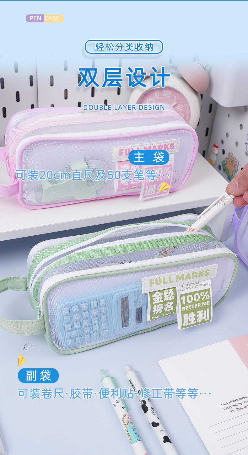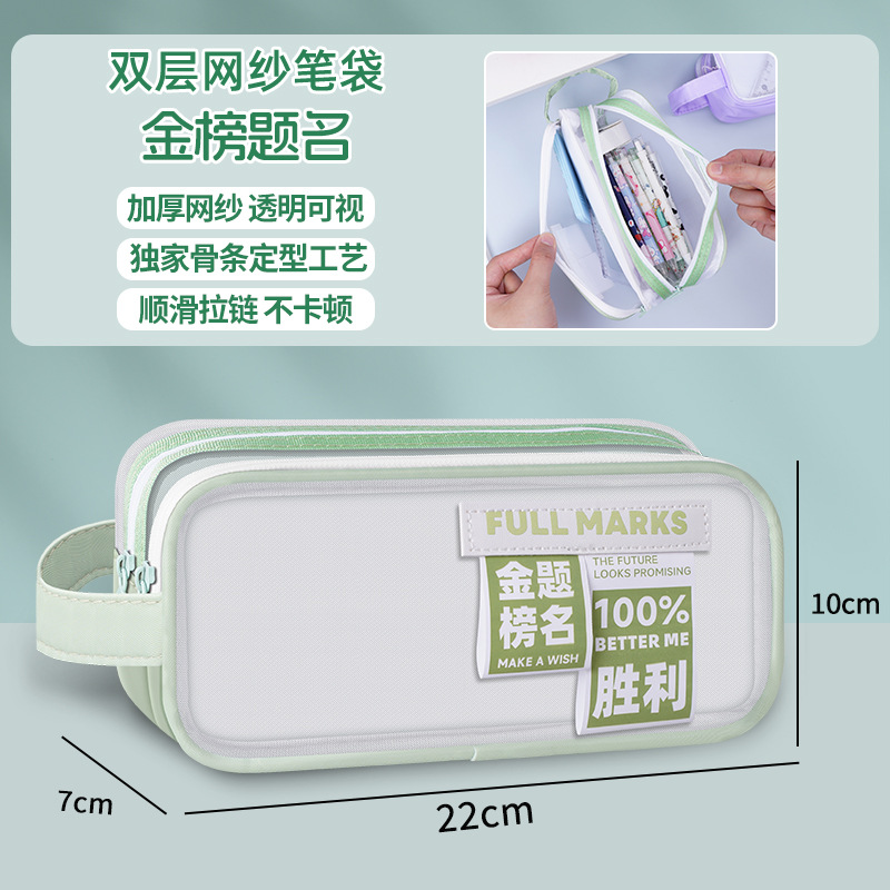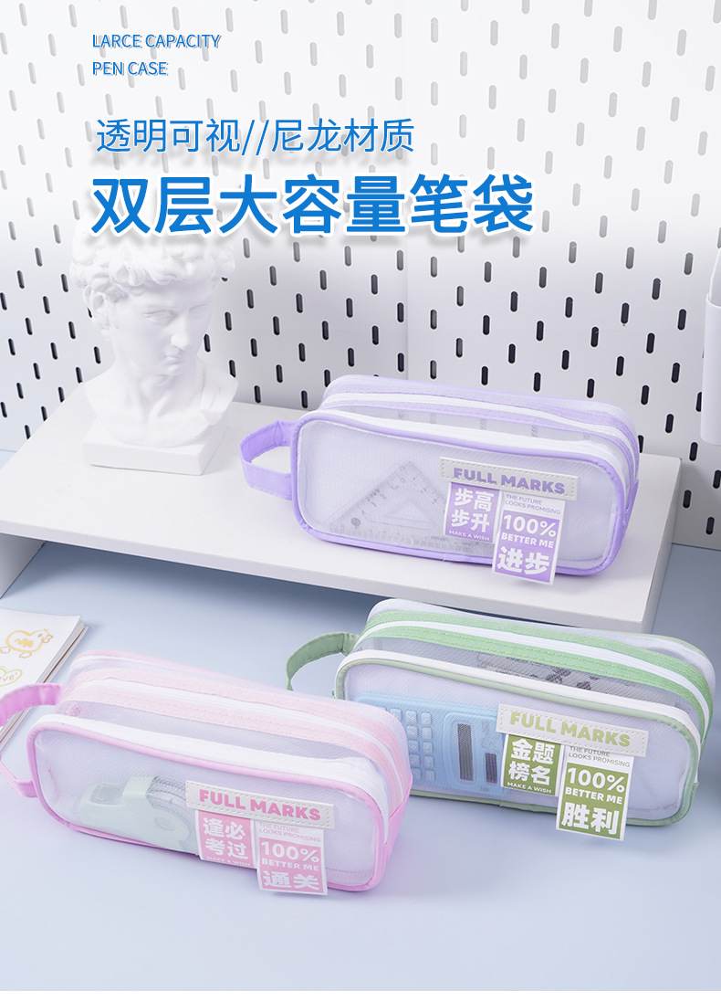 금상 명단 더블 레이어 대용량 메쉬 펜 가방 다기능 고가치 휴대용 문구 간단한 메쉬 문구 가방
