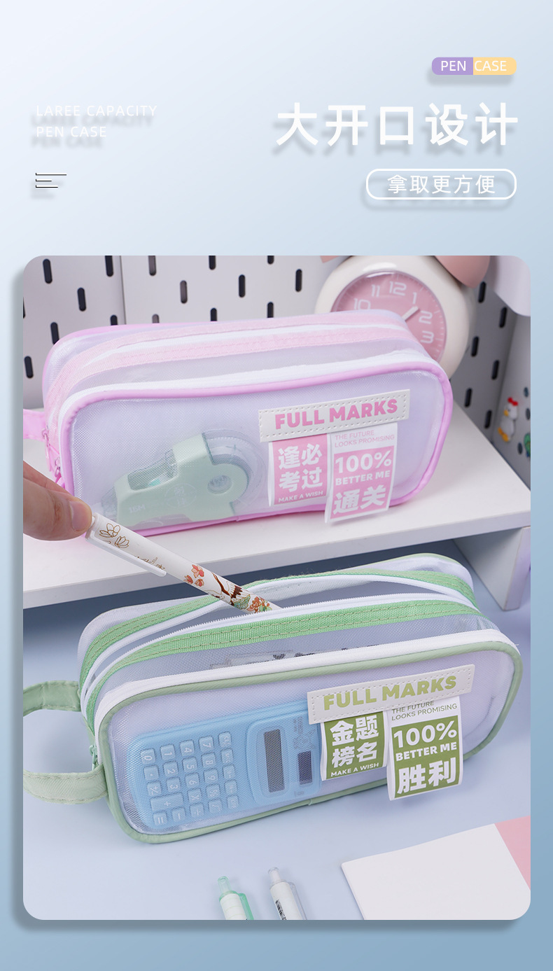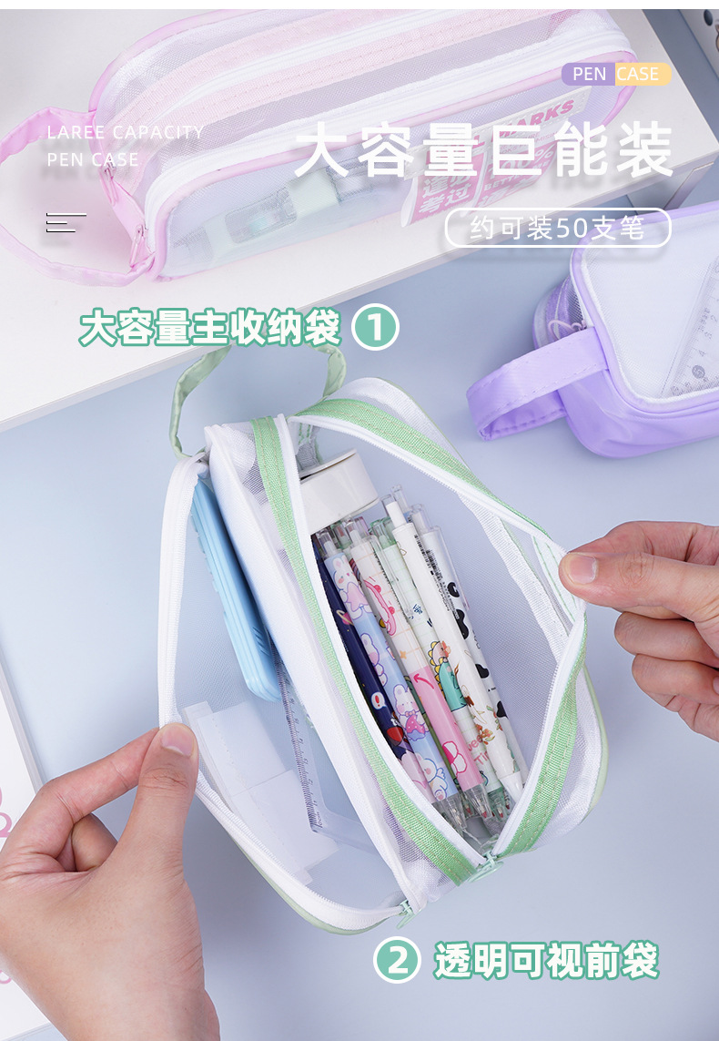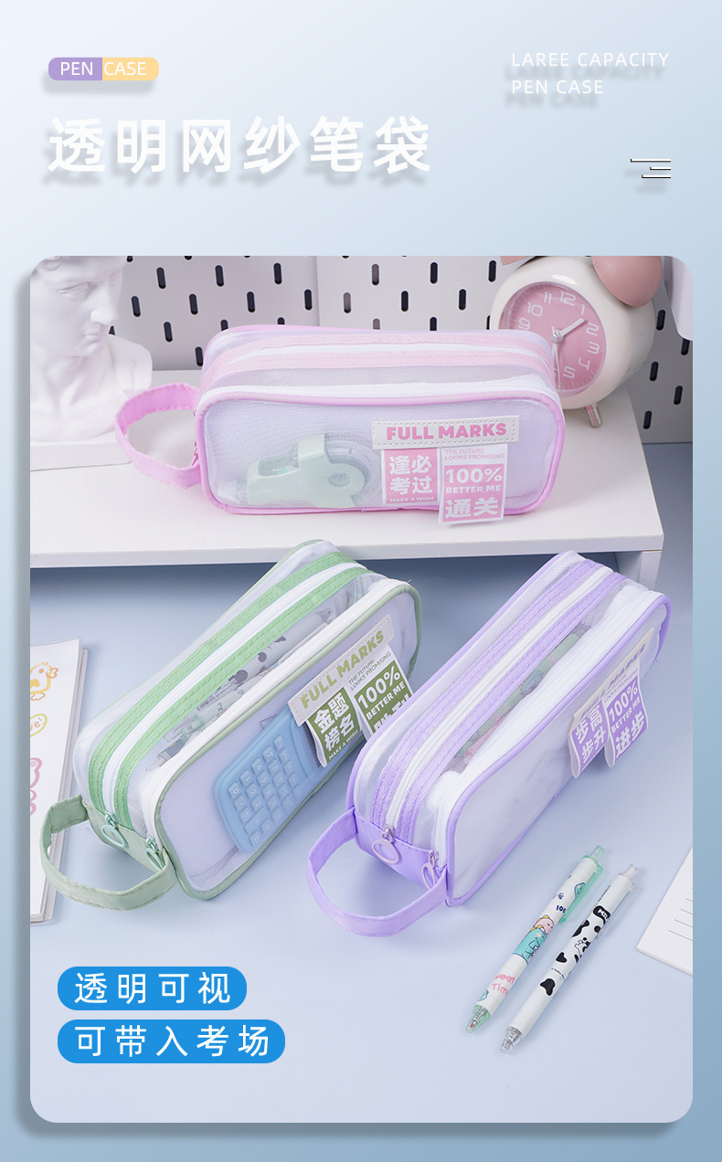 금상 명단 더블 레이어 대용량 메쉬 펜 가방 다기능 고가치 휴대용 문구 간단한 메쉬 문구 가방스토어 가기
