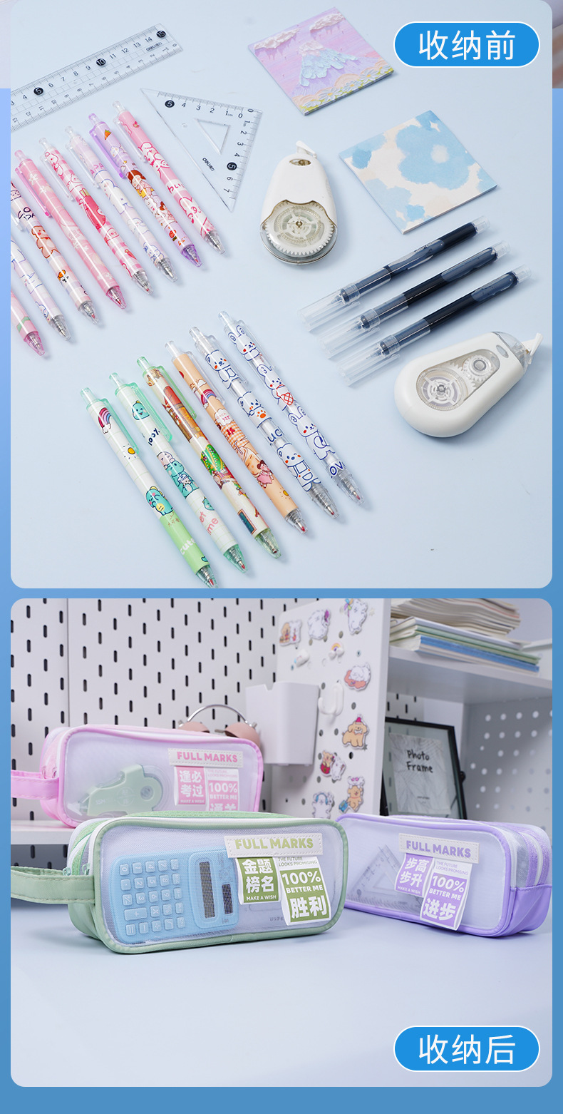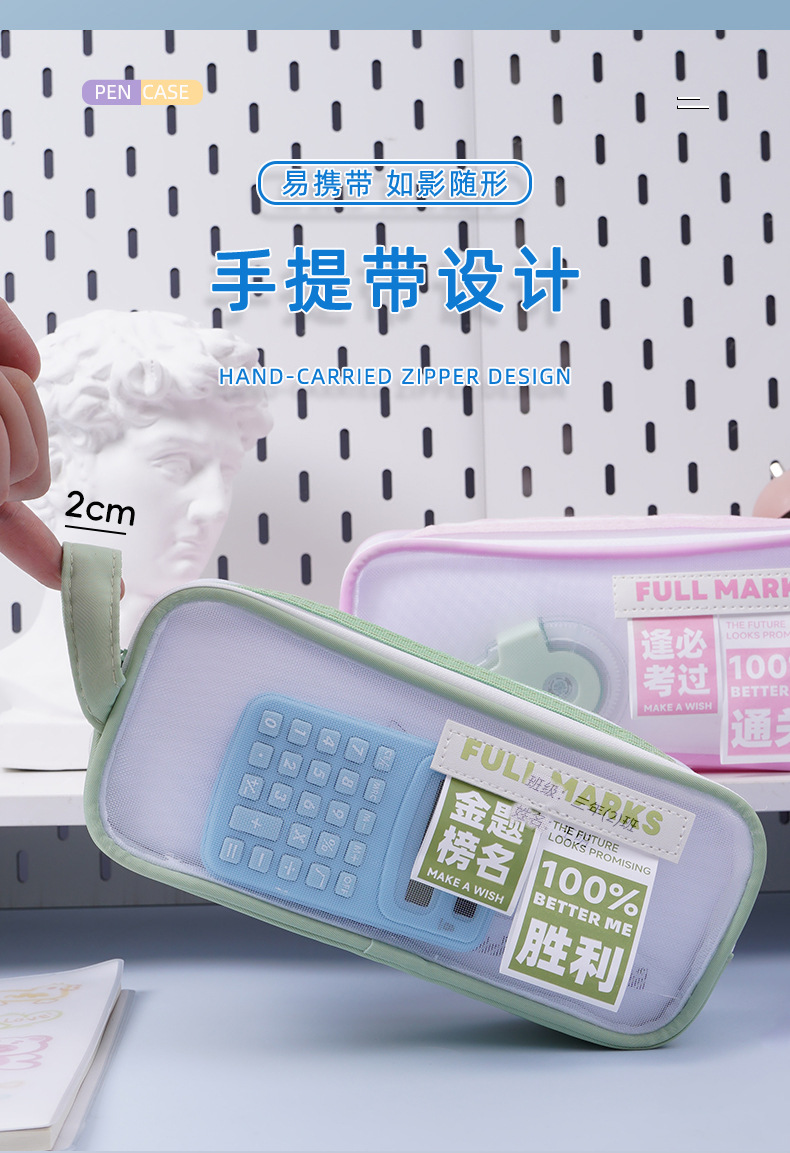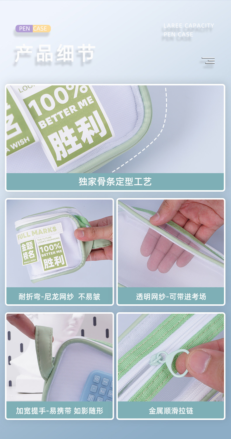 금상 명단 더블 레이어 대용량 메쉬 펜 가방 다기능 고가치 휴대용 문구 간단한 메쉬 문구 가방스토어 가기
