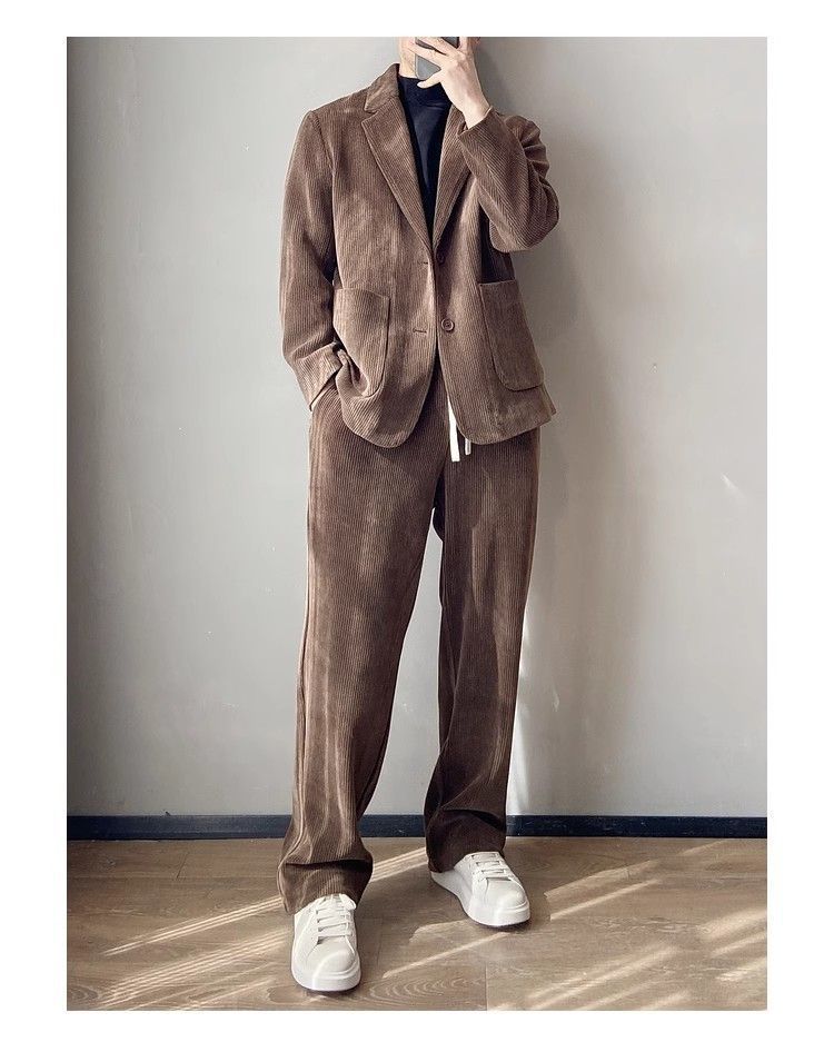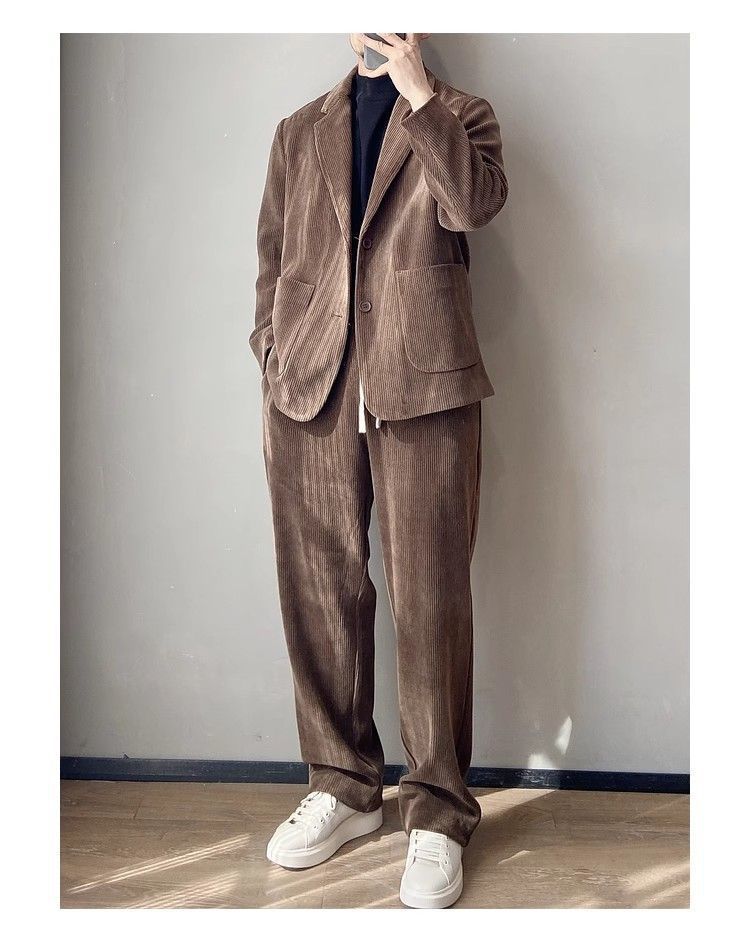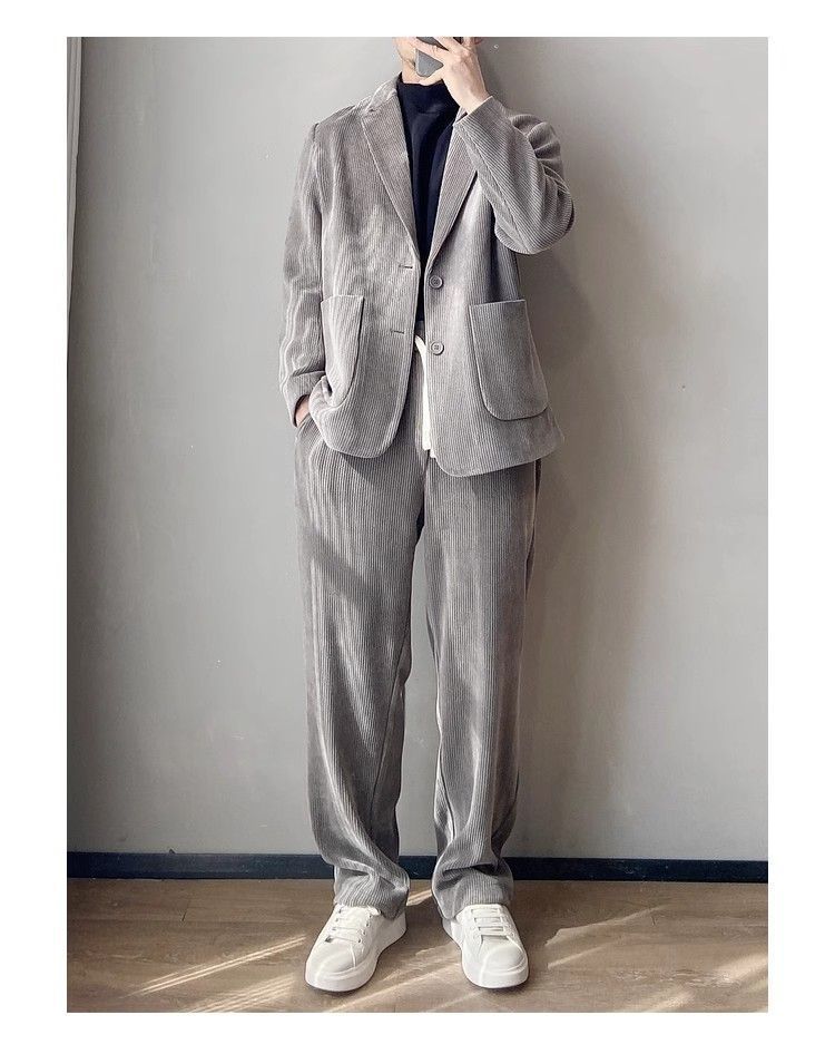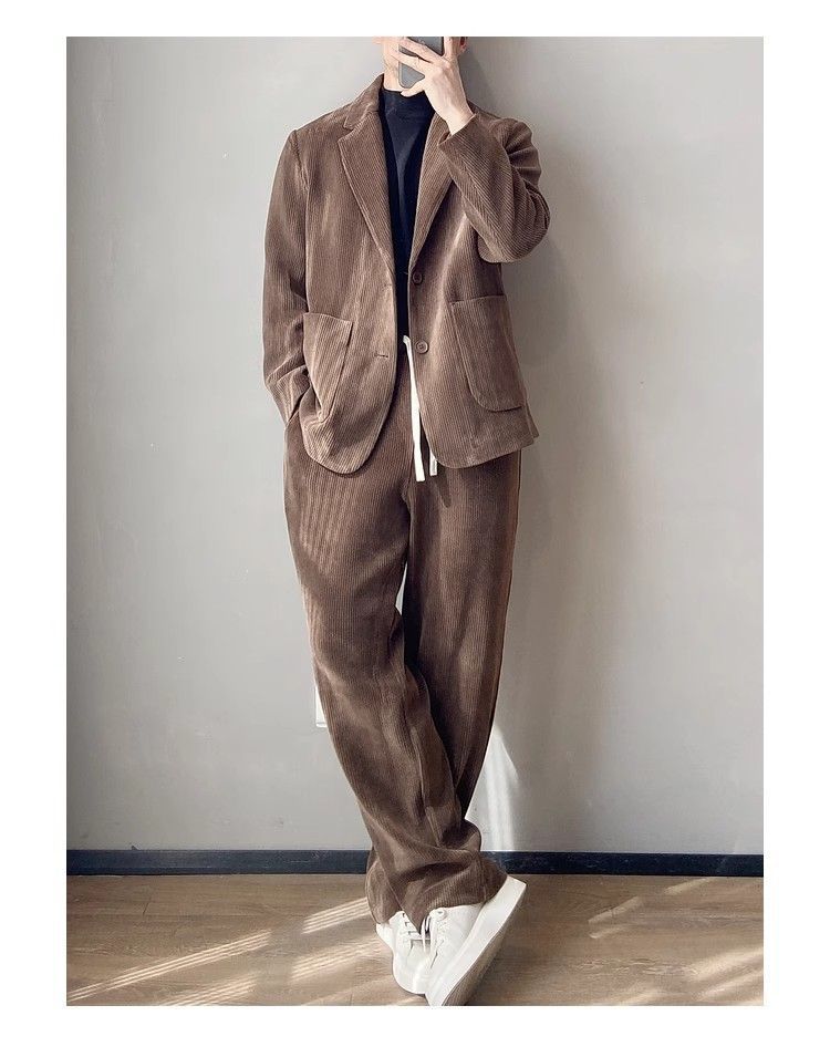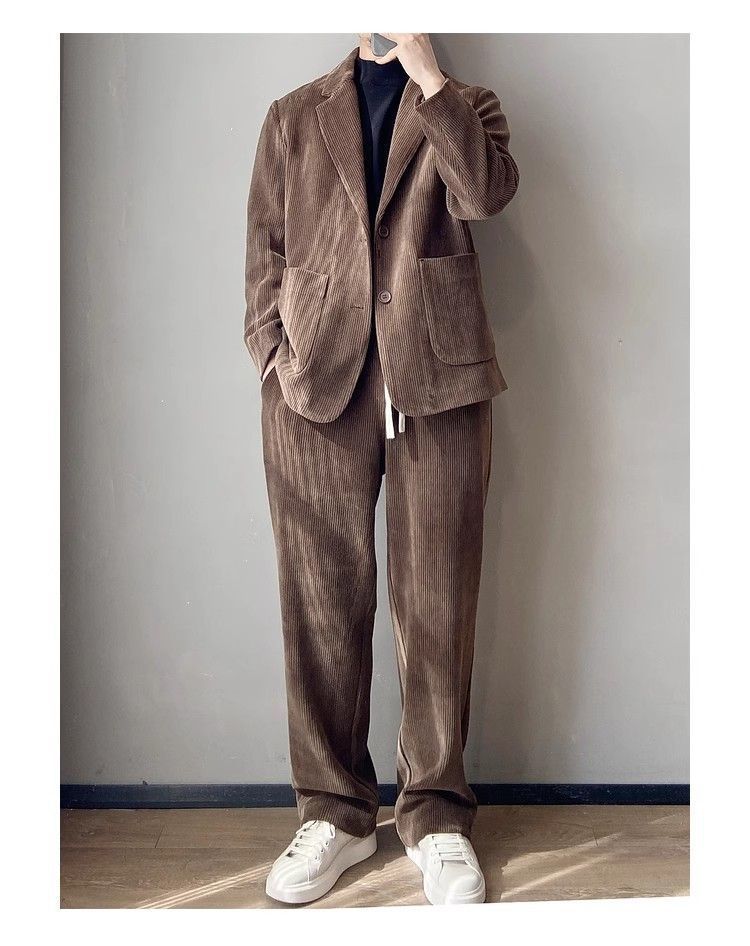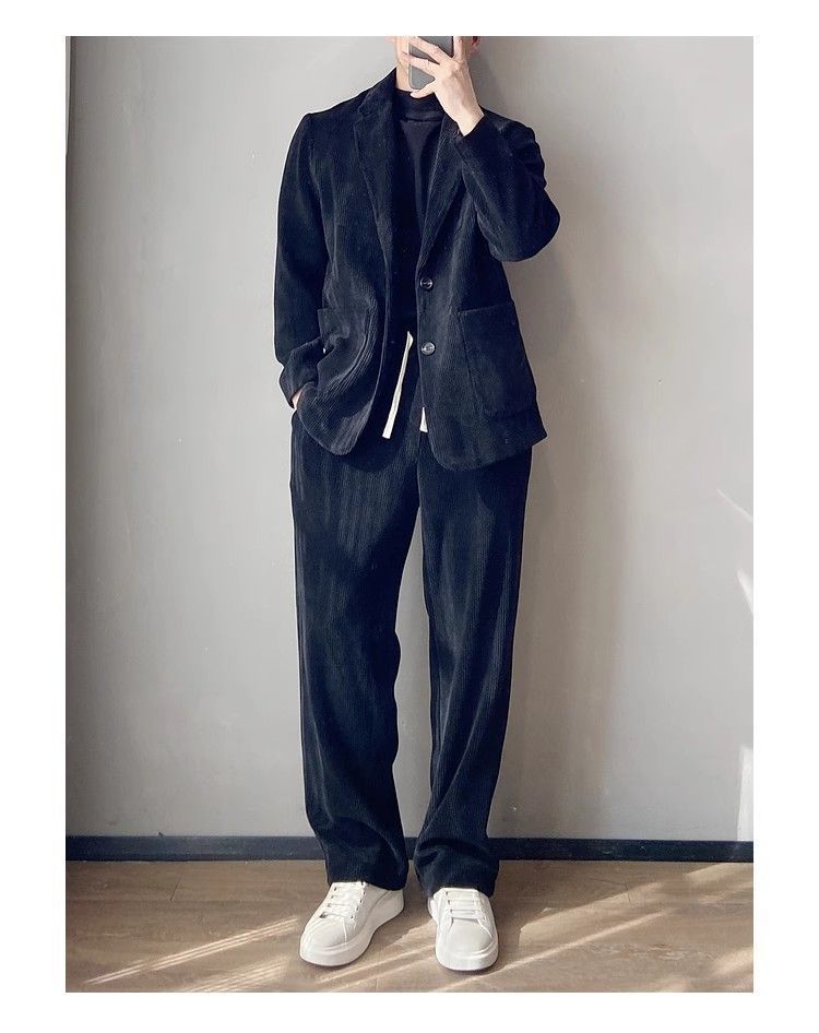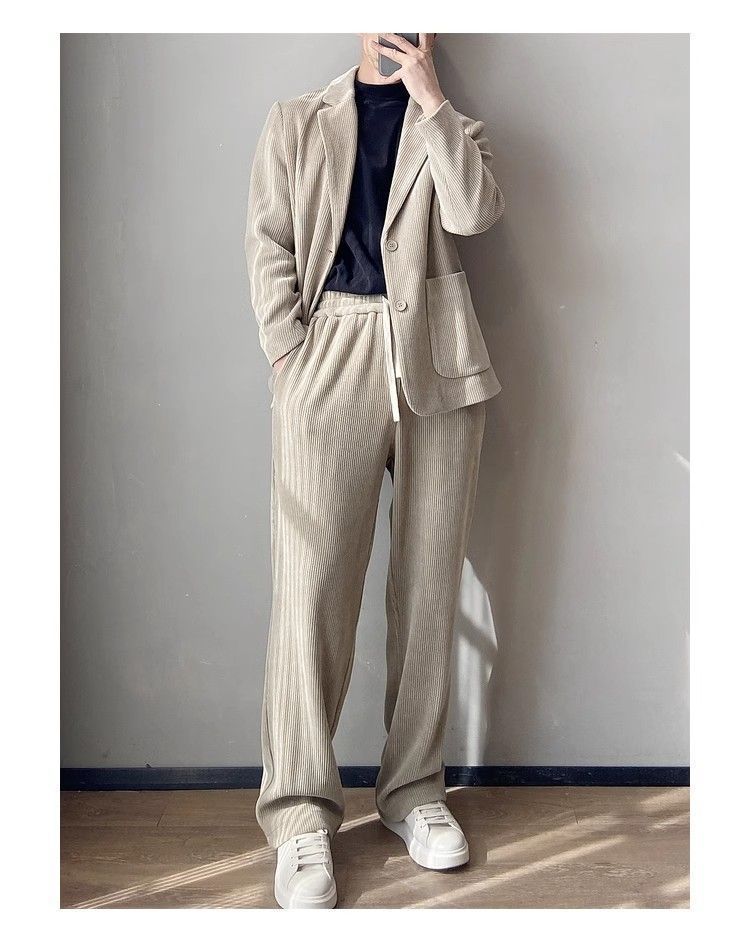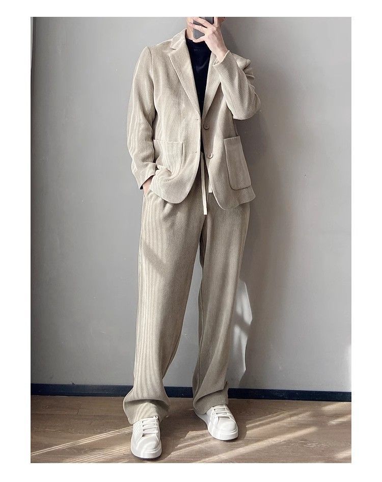 스타일 세트 세트 2025 남자 느슨한 편안한 하이 엔드 올 매치 하이 퀄리티 이른 봄 투피스 유행 세트스토어 가기