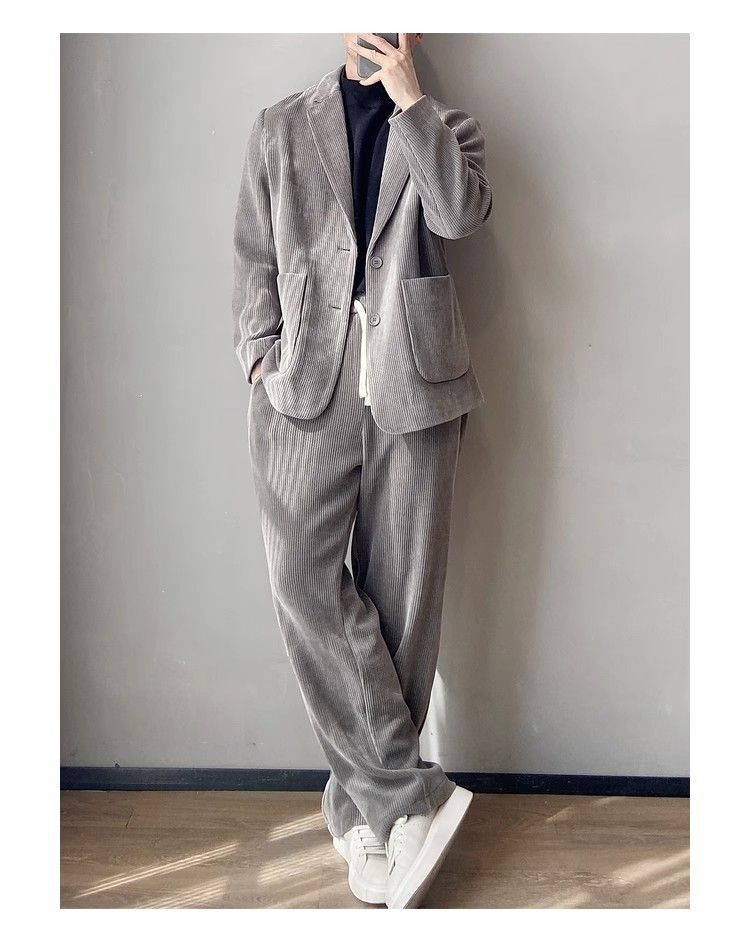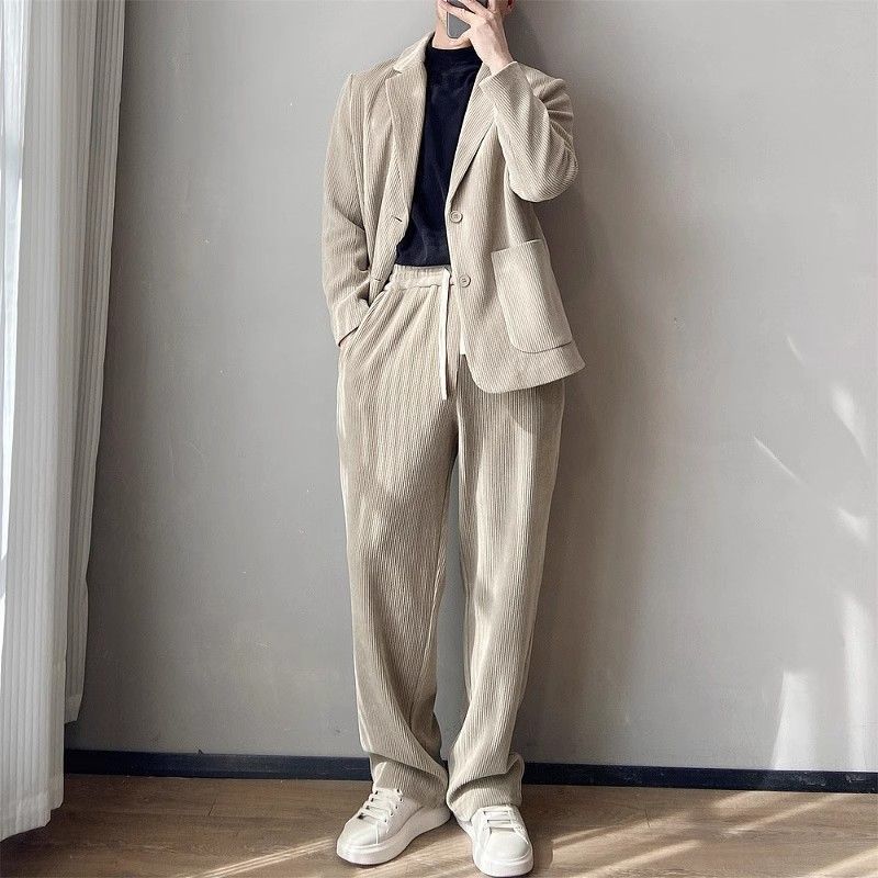 스타일 세트 세트 2025 남자 느슨한 편안한 하이 엔드 올 매치 하이 퀄리티 이른 봄 투피스 유행 세트