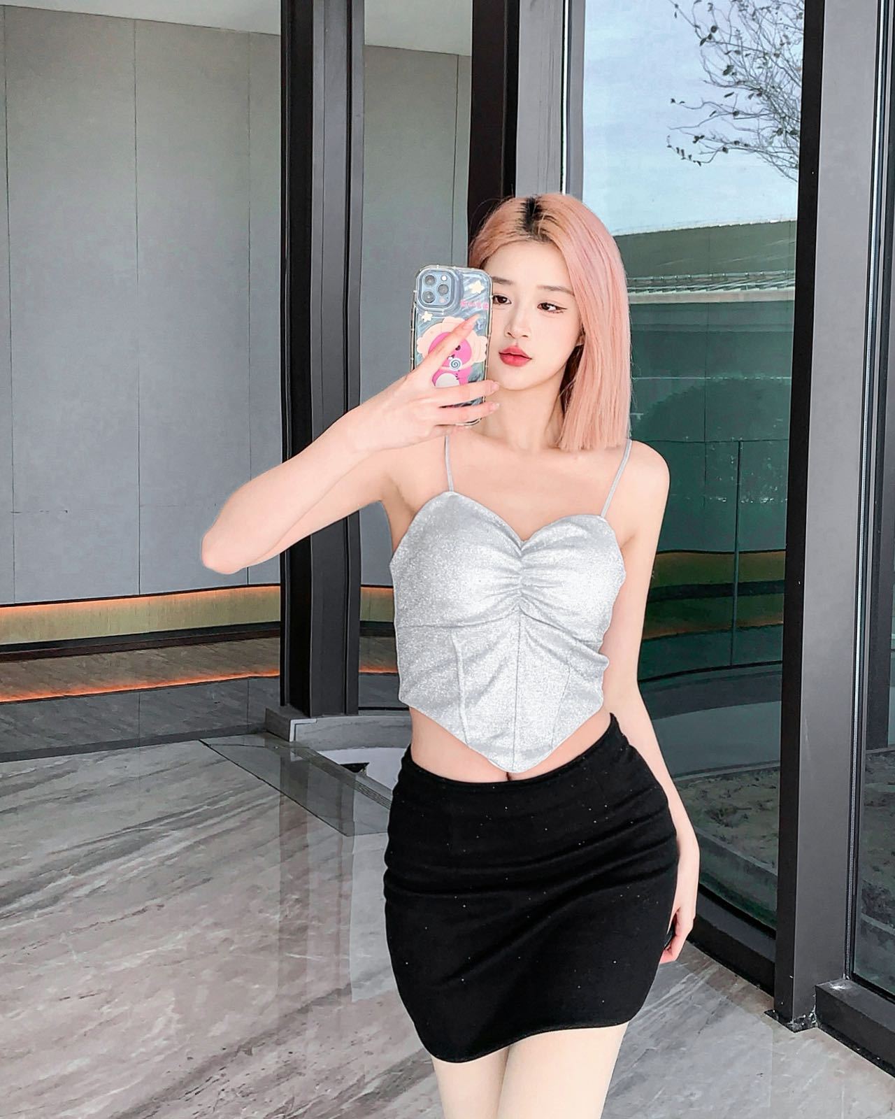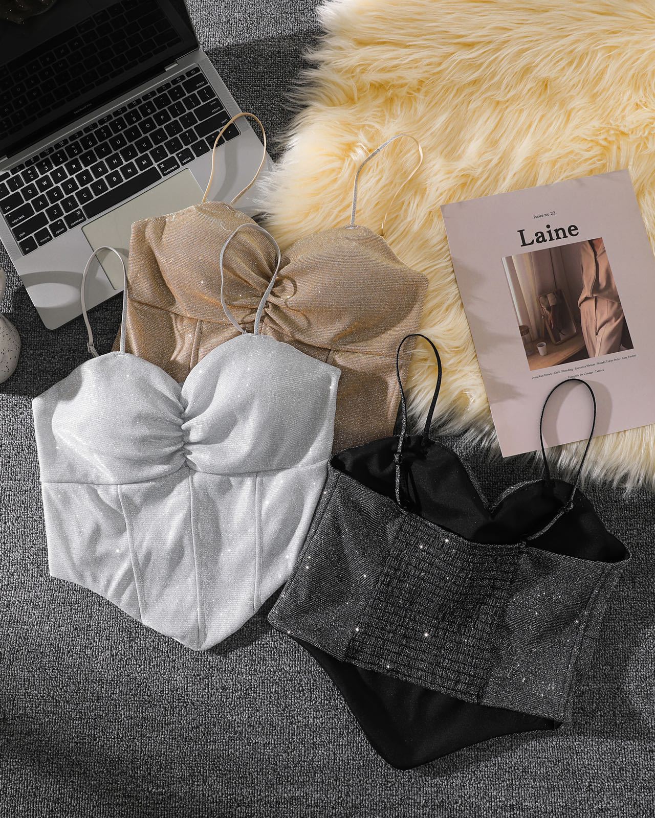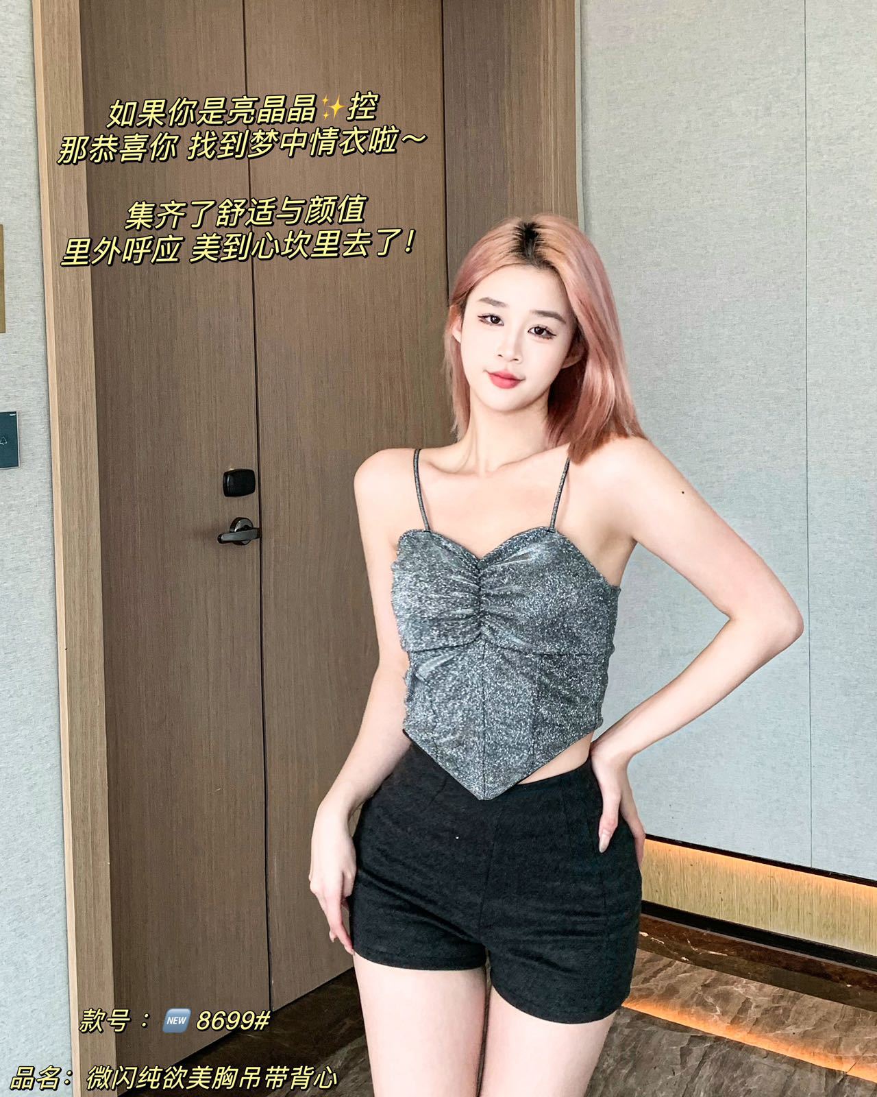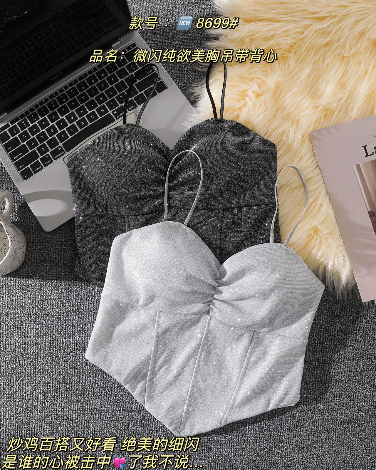 8699 스파이스 걸스 반짝이는 퓨어 카미솔 아우터 패션 섹시한 소녀의 끈이없는 슬림 핏 짧은 민소매 탑