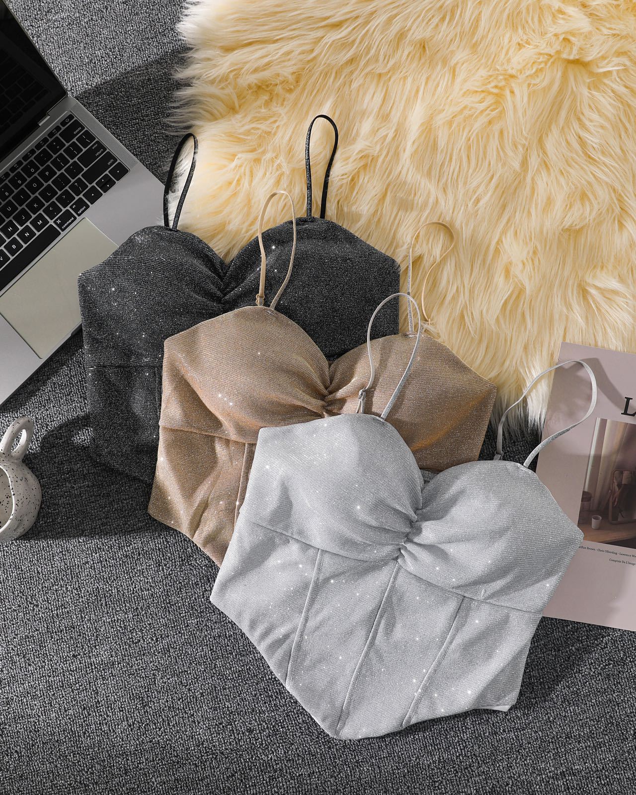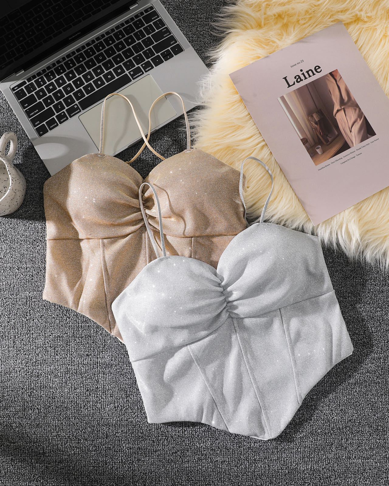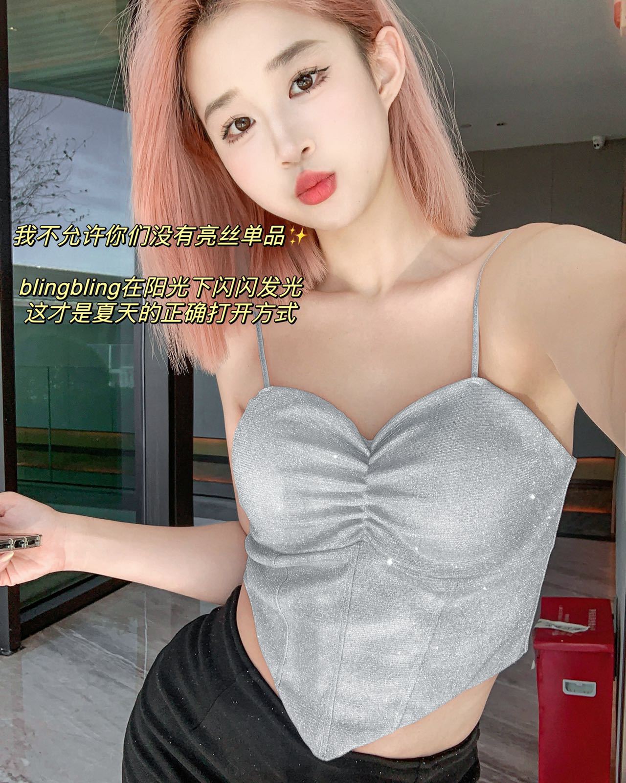 8699 스파이스 걸스 반짝이는 퓨어 카미솔 아우터 패션 섹시한 소녀의 끈이없는 슬림 핏 짧은 민소매 탑스토어 가기